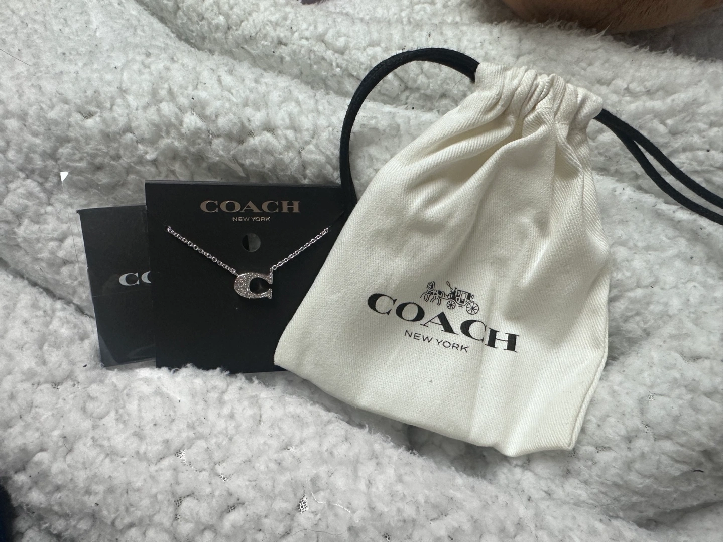 Stunning Coach necklace. Features a silver-tone 'C' initial pendant encrusted with clear crystals. Comes with original Coach dust bag and packaging.