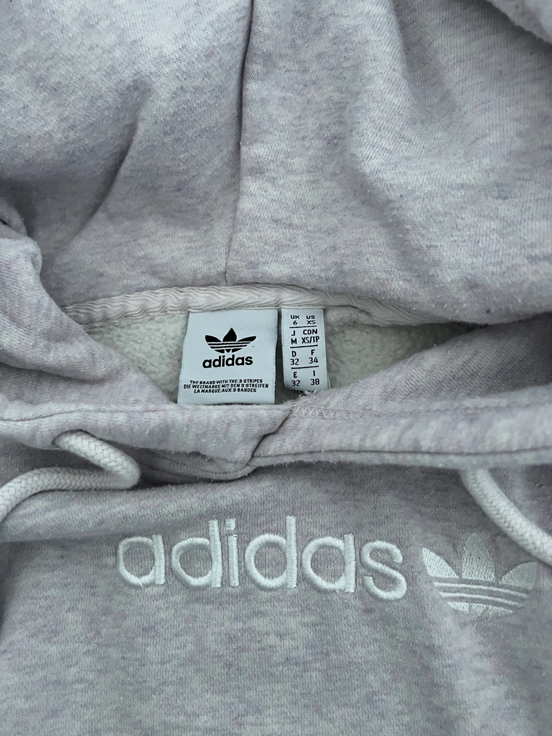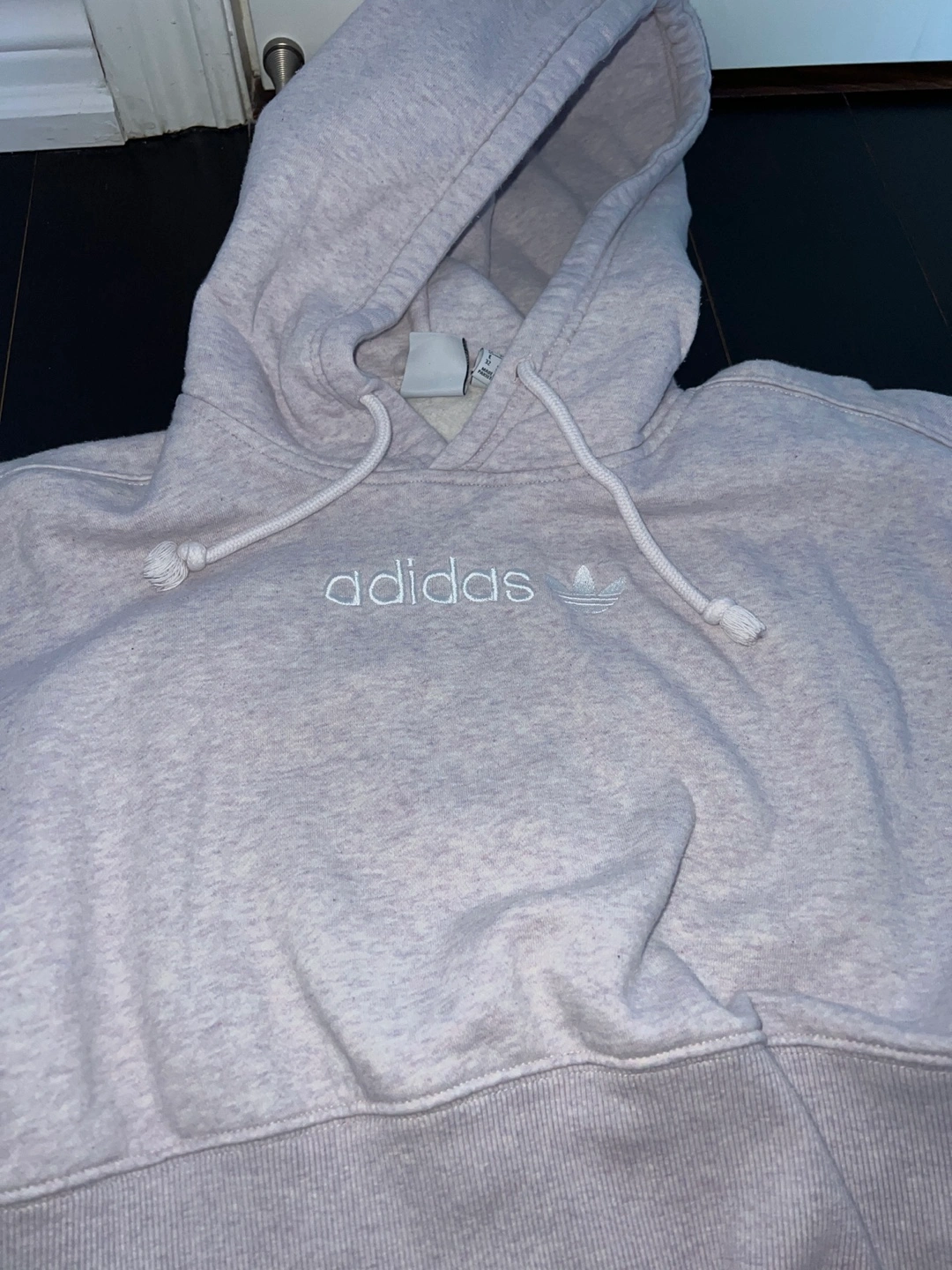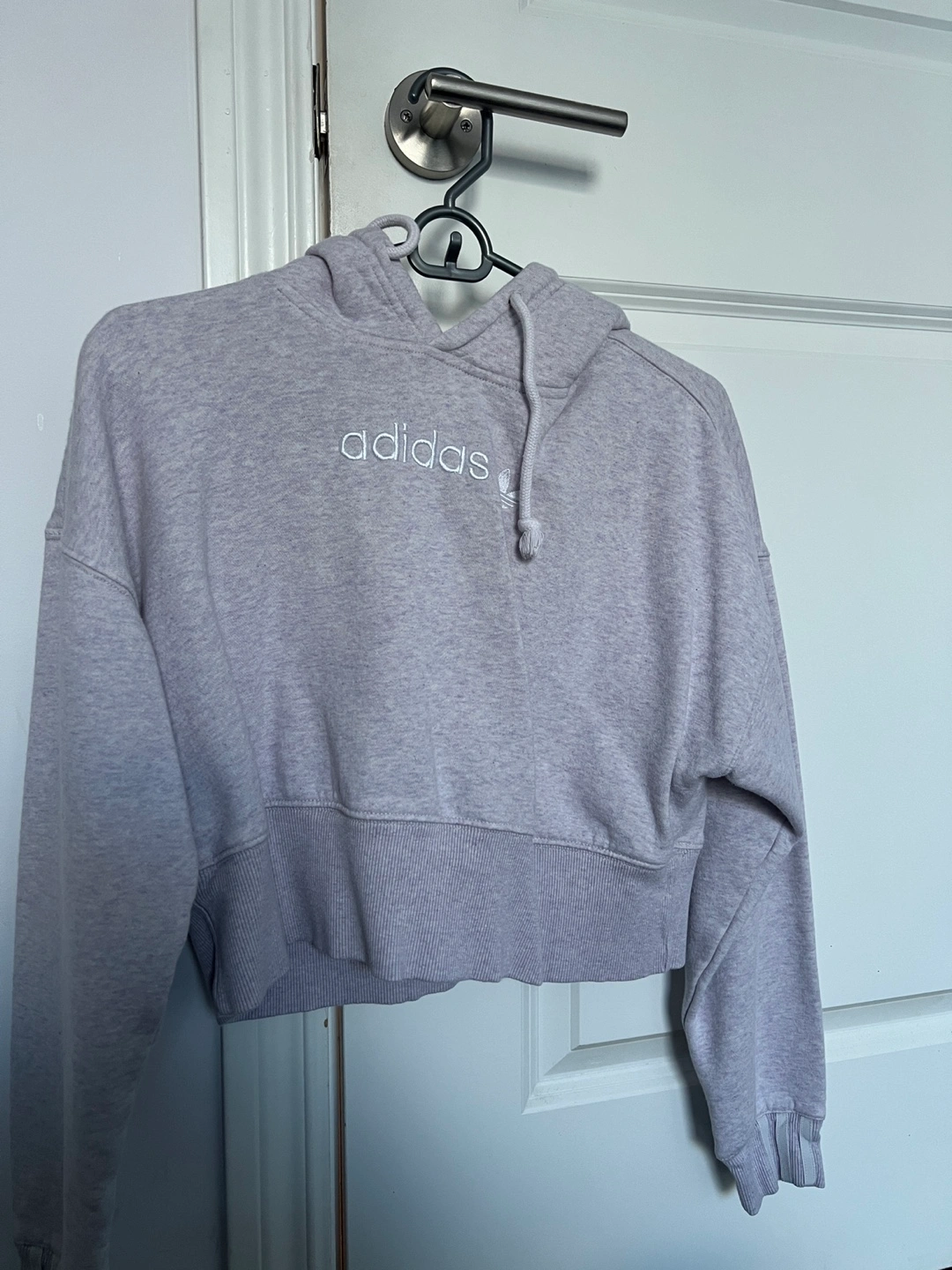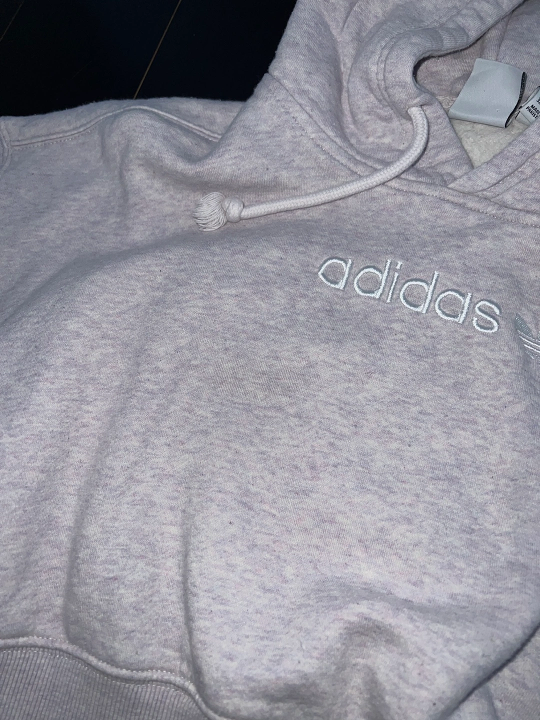 Light purple cropped hoodie. Soft fleece interior. Embroidered Adidas logo. Size XS. Super warm Pick up only