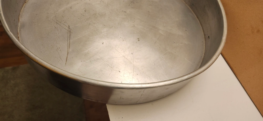 EXCELLENT CONDITION, round aluminum baking pan price not negotiable. Shows signs of use. Great for baking cakes or pies. Durable and sturdy construction. price only cash only pickup no delivery. Meet up 801 O'Connor drive outside TD Canada Trust bank door.