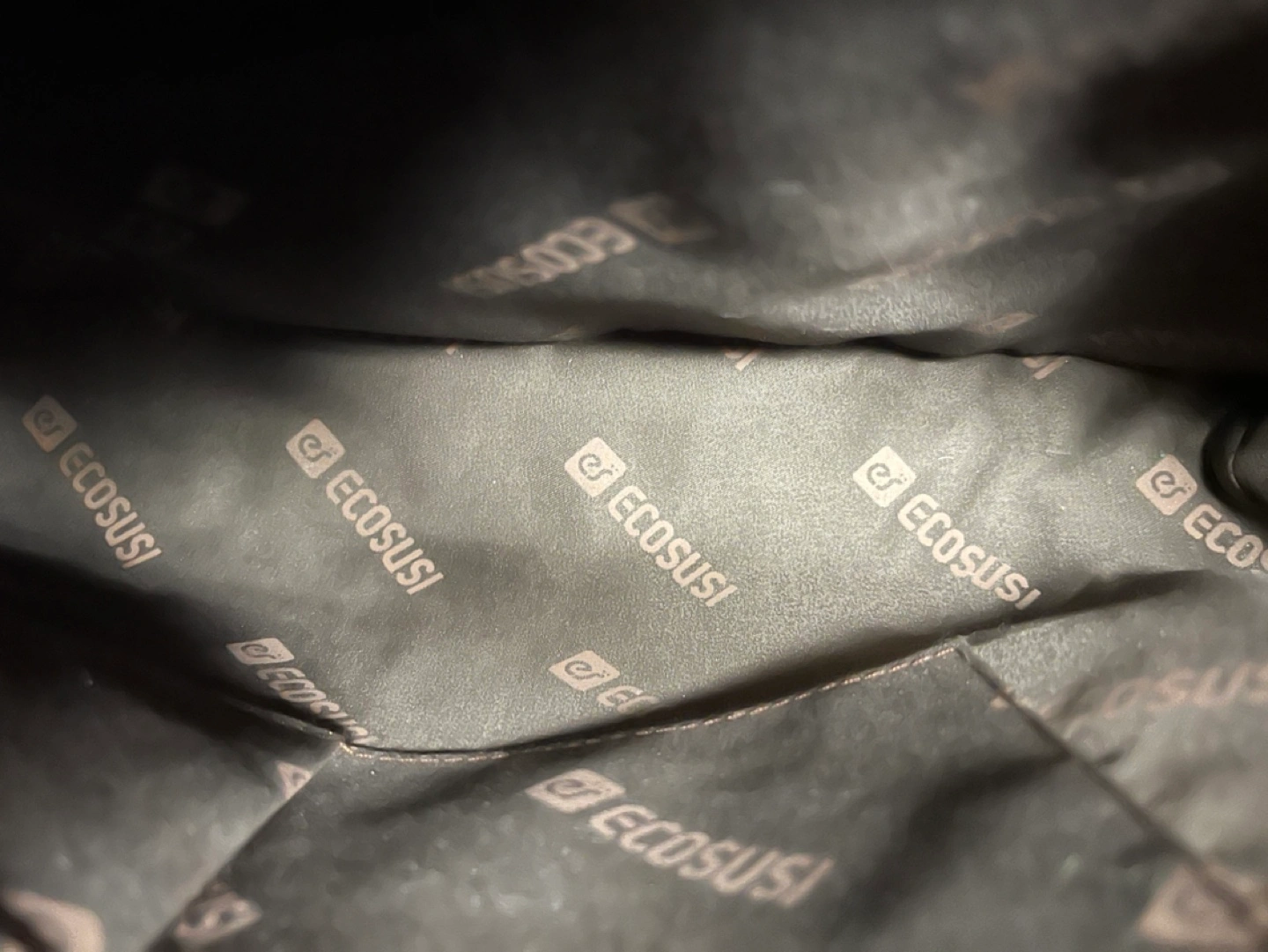 Stylish brown satchel bag. Features a detachable shoulder strap and laser-cut detailing. Interior lining shows ECOSUSI branding. Great for business / work purposes
