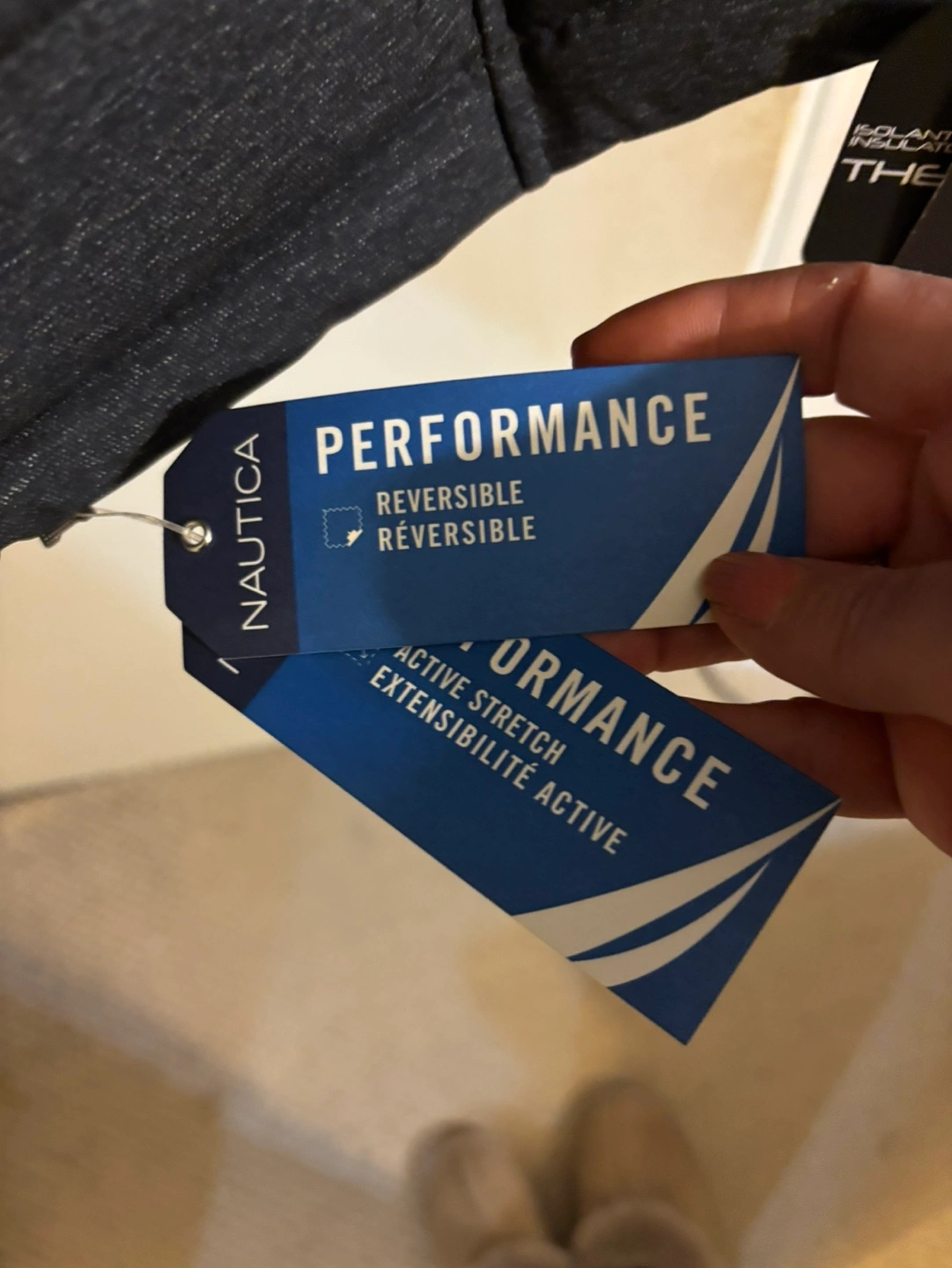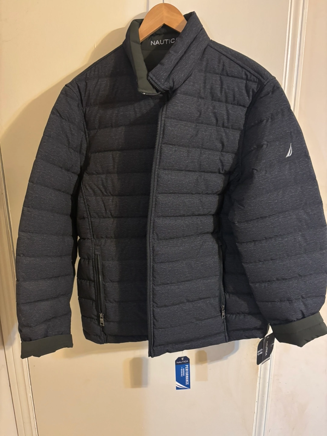 Men's reversible puffer jacket. Features Thermatec insulation. Performance fabric. Active stretch. Tags still on. Great for colder weather.