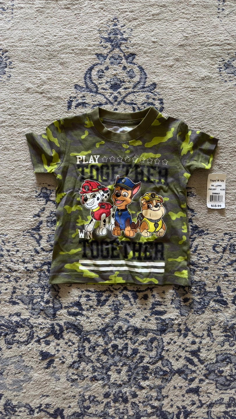 New Adorable Paw Patrol graphic tee. Camouflage print. Short sleeves. Size 12 months. Only available for pick up