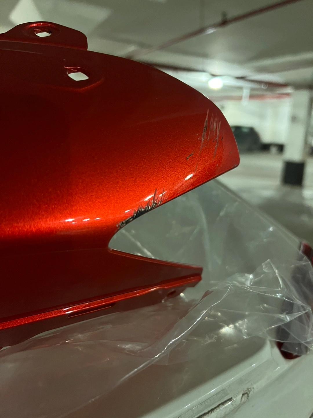 Candy Burnt Orange Kawasaki motorcycle front fairing. Minor scratches on the side. Used & Good condition, just require minor touch up & paint. Color: Candy Burnt Orange
