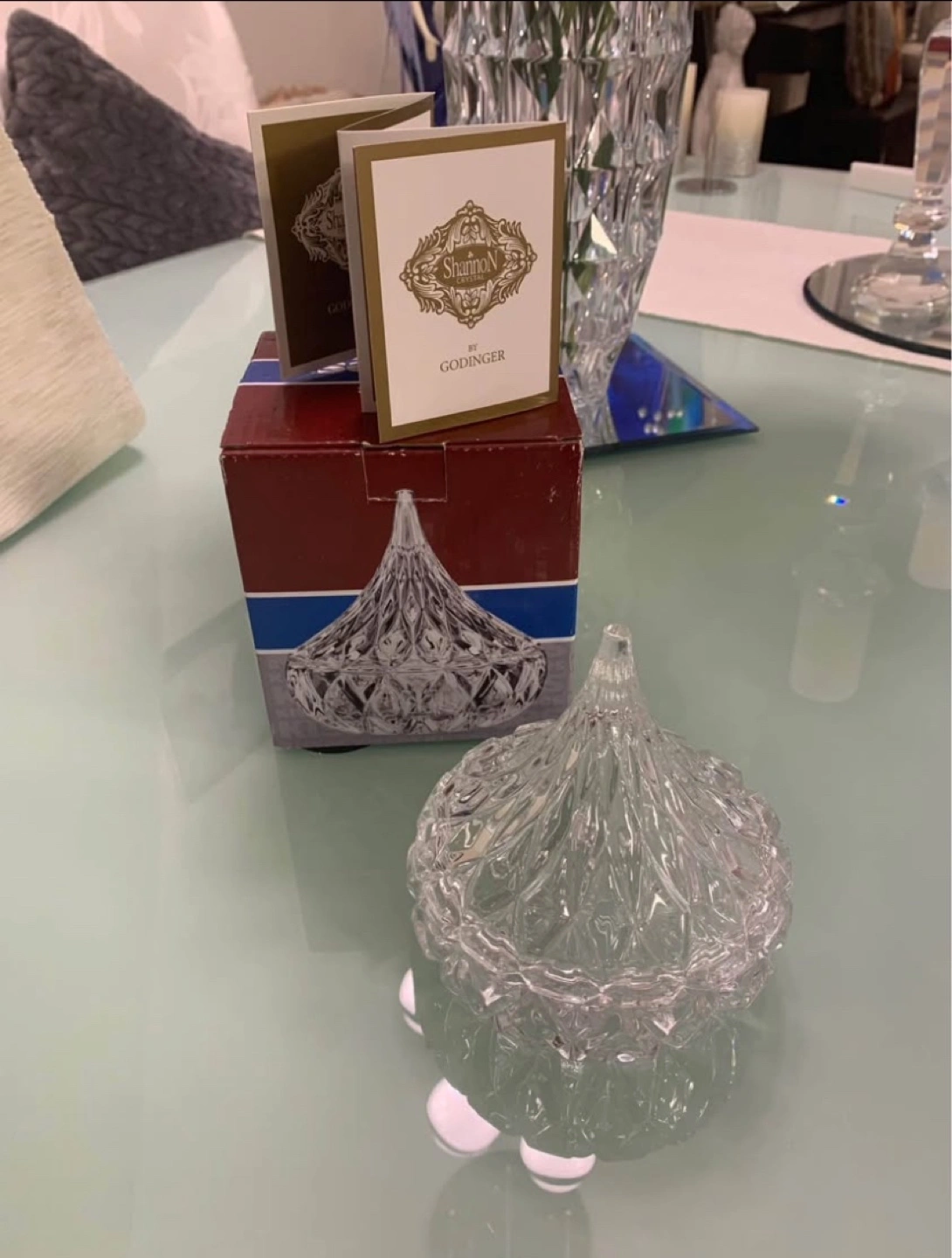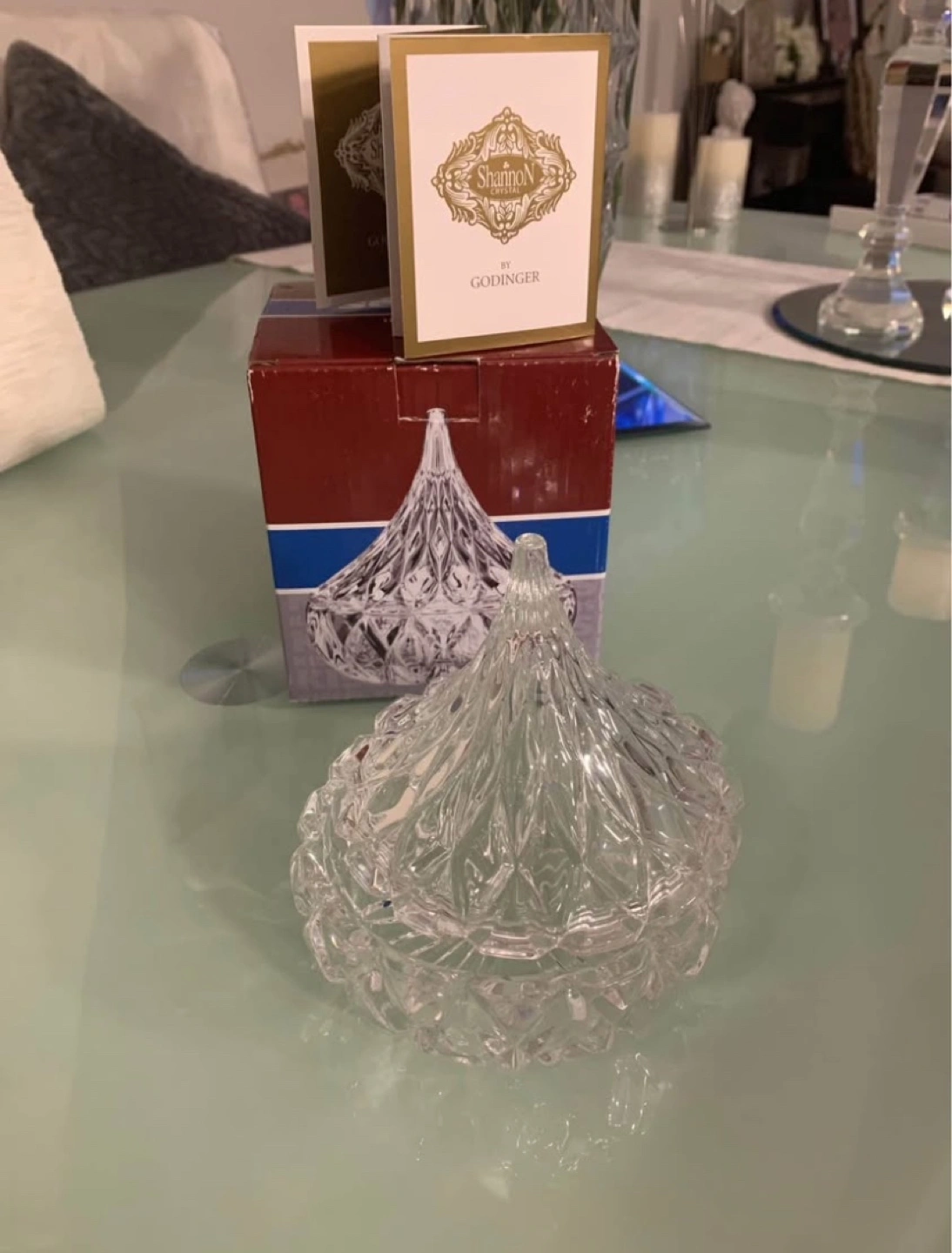 Crystal candy dish, Kisses chocolate shape. Comes with original box. Beautiful and unique addition to your home decor.