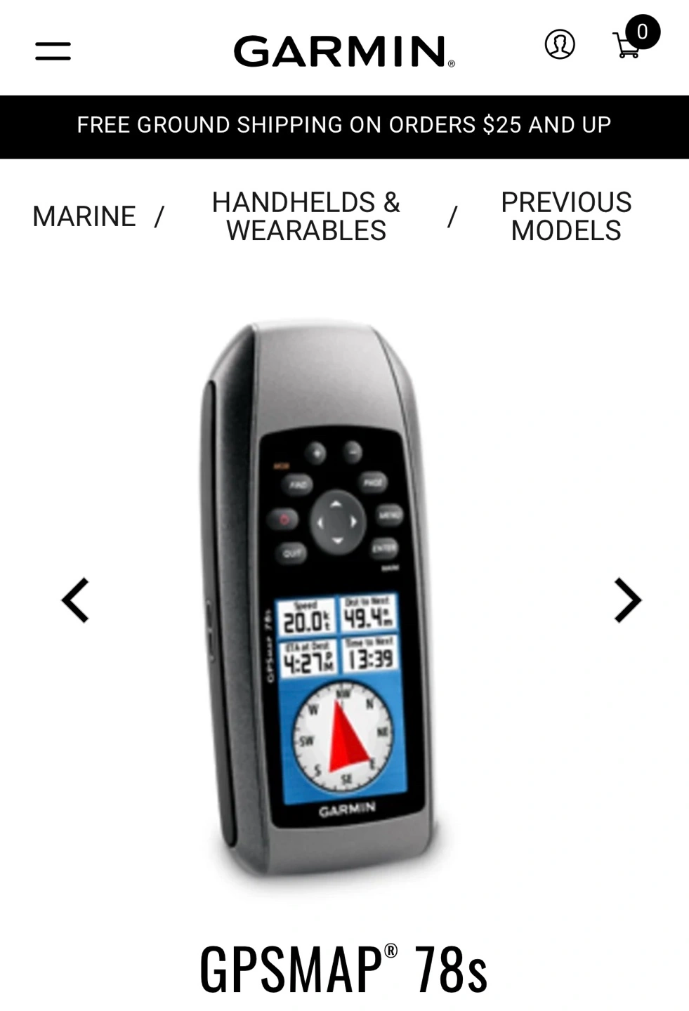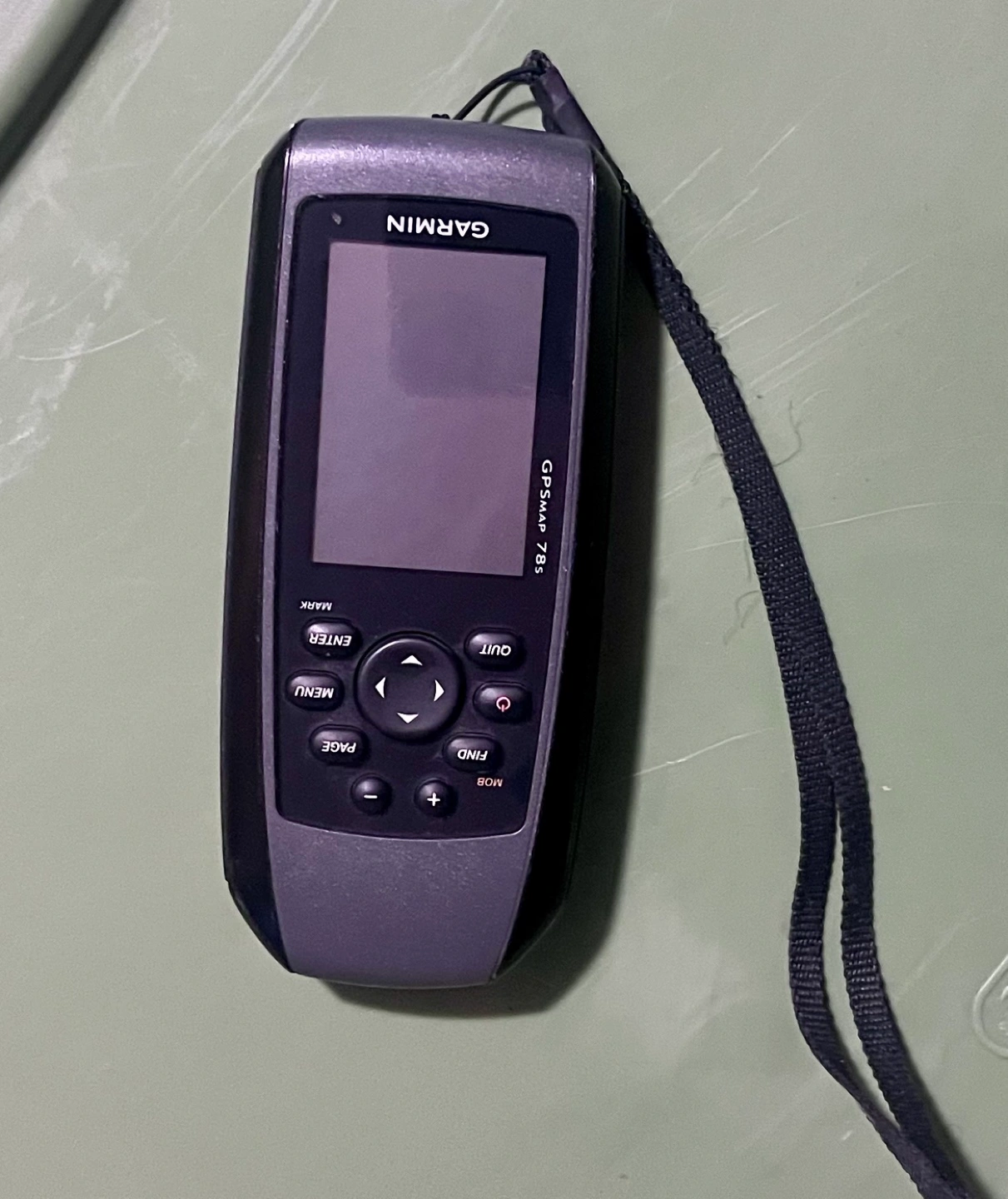 Pre-owned Garmin GPSMAP 78s handheld GPS unit. Includes wrist strap. Great for hiking, boating, or other outdoor activities.