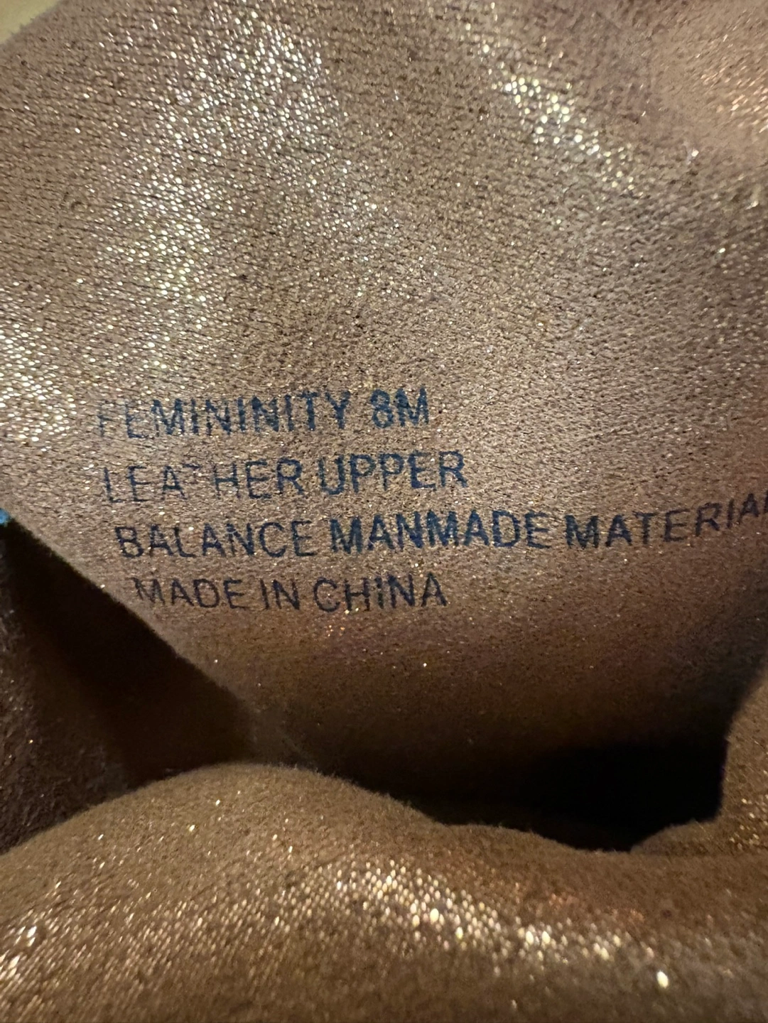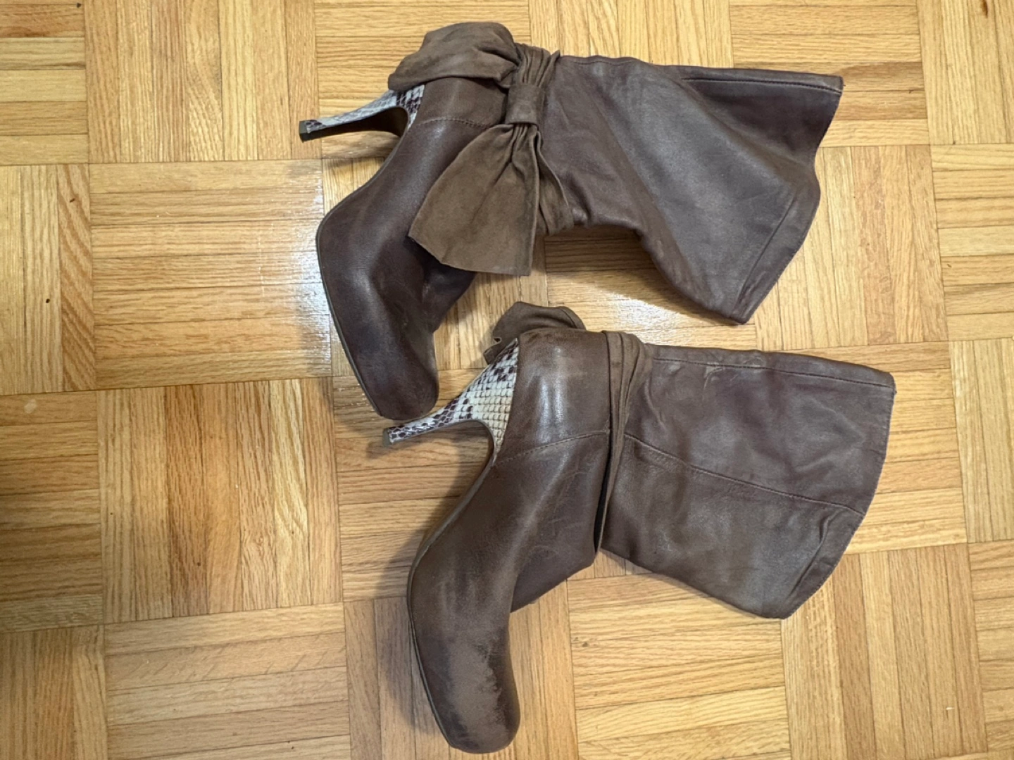 Femininity brand leather booties. Size 8M. Features a bow detail and snakeskin accents.