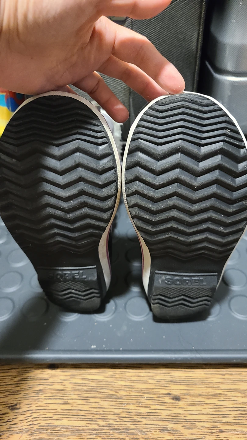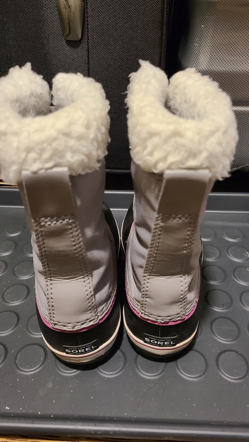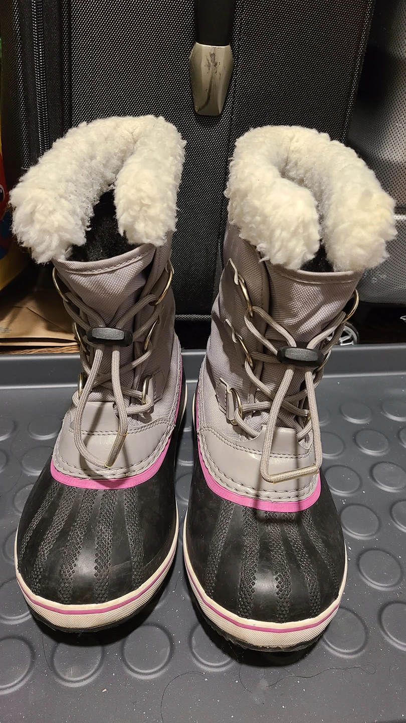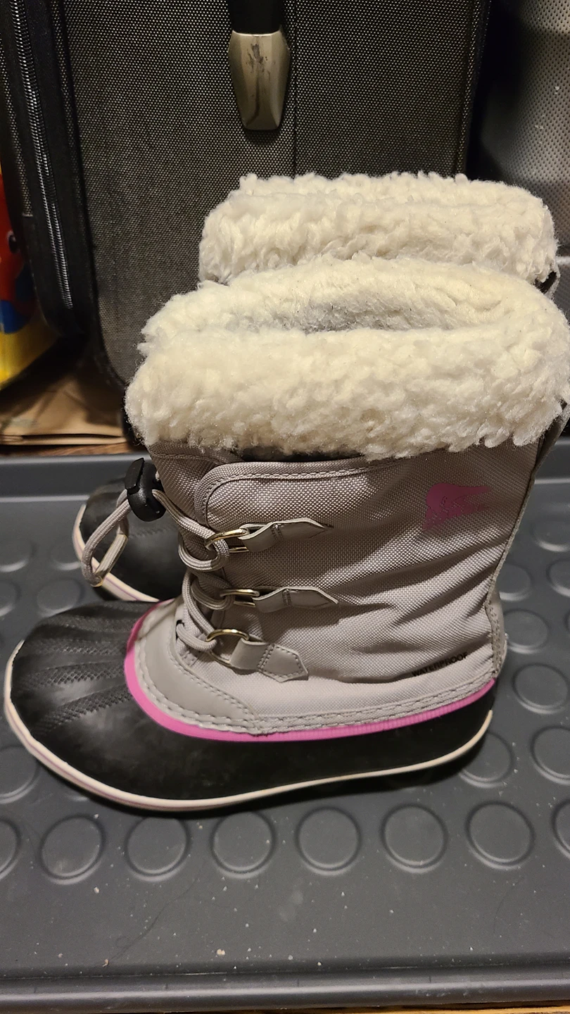 Size 3 Sorel winter boots. Bought them Feb. this year Good condition. Nothing wrong with the boots. They are just too small now.