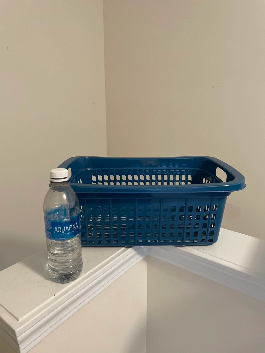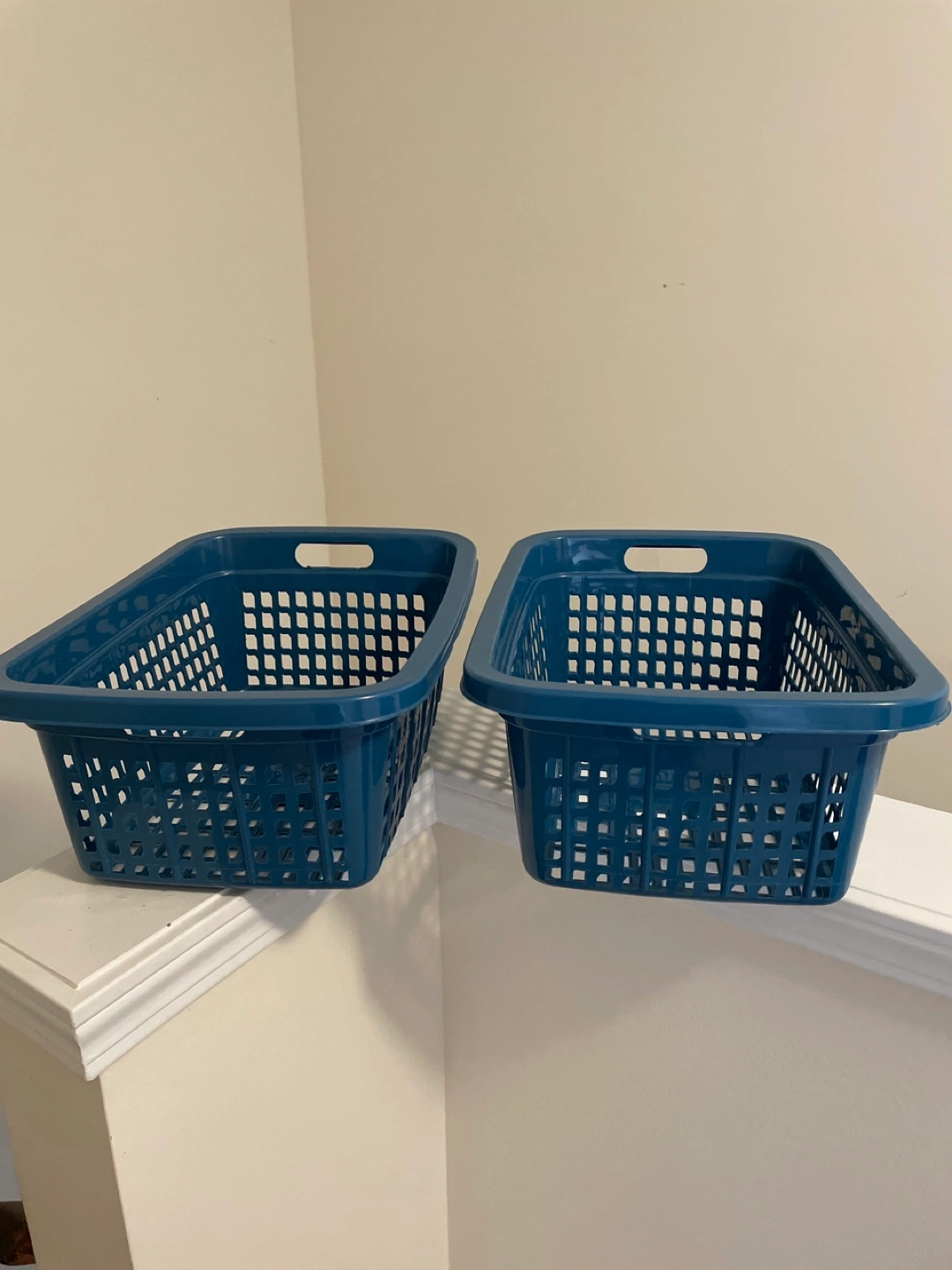 Two navy blue plastic baskets. Durable and lightweight. Great for organizing clothes.Smoke free and pet free home