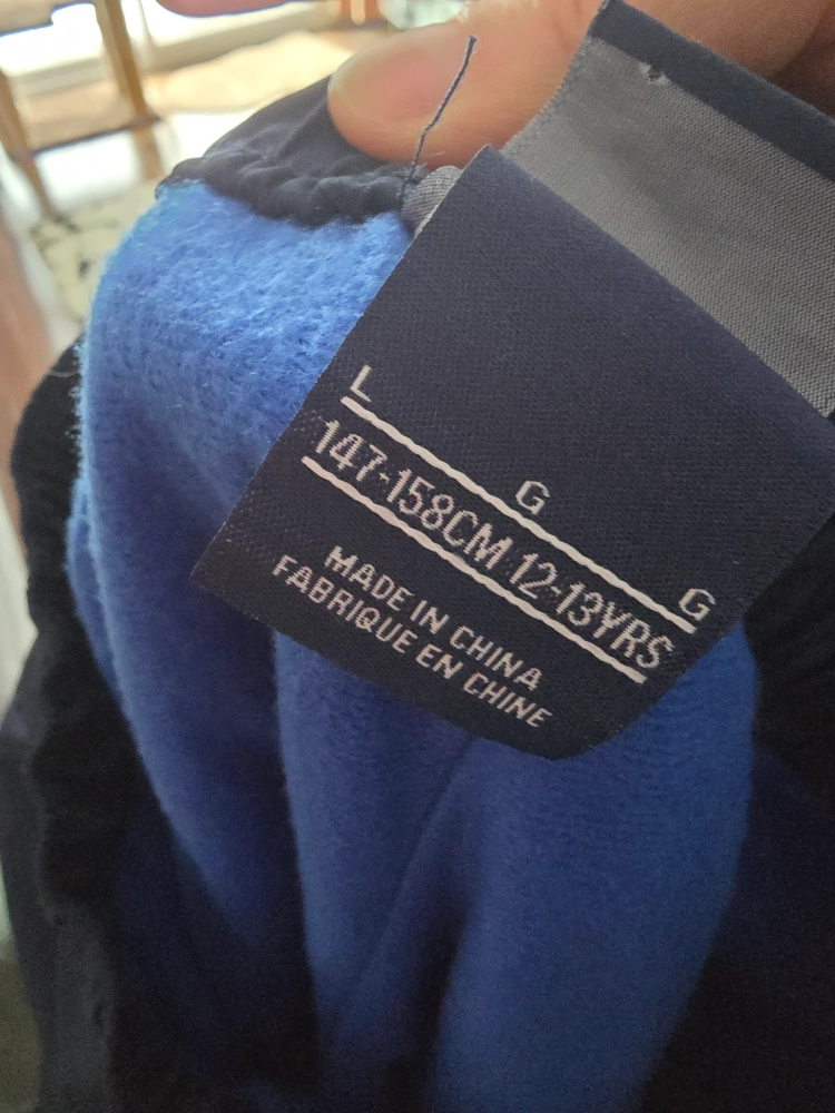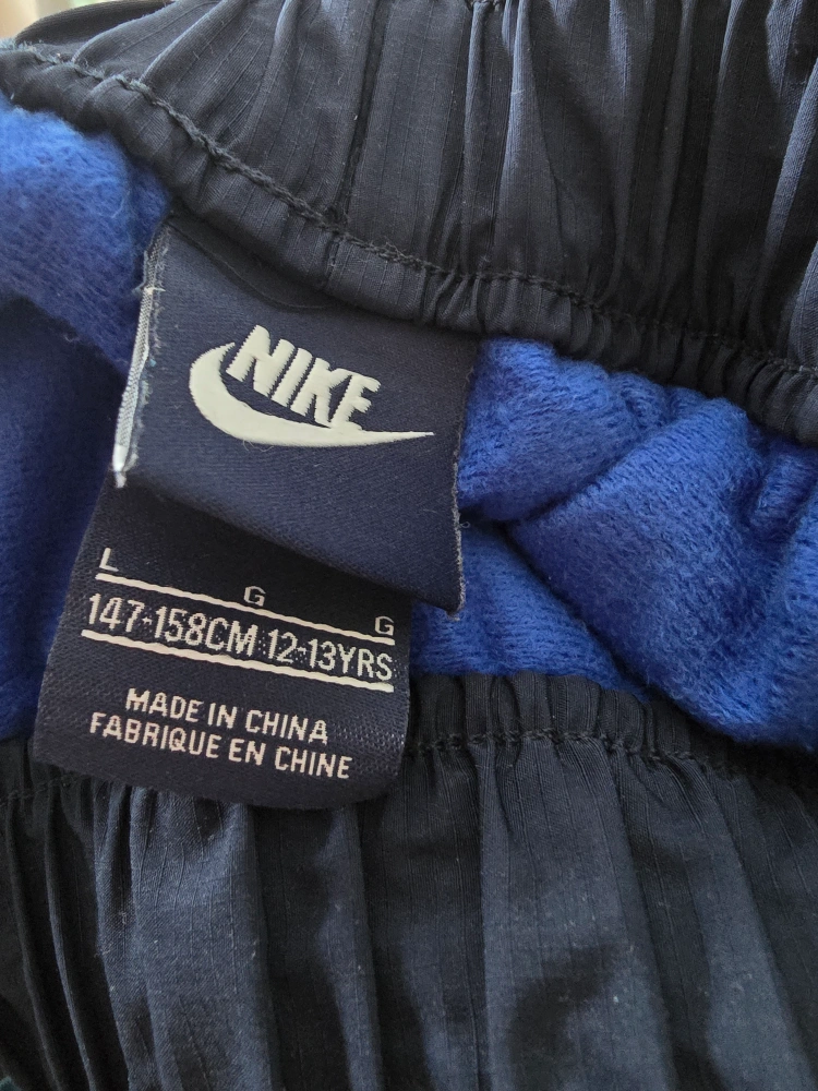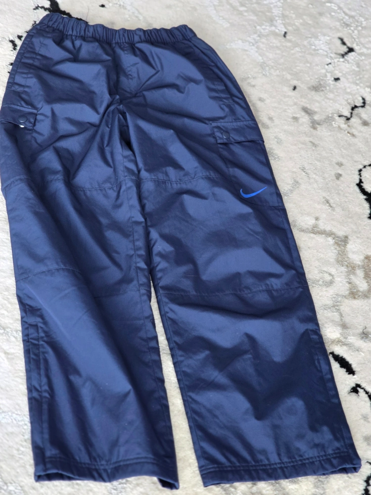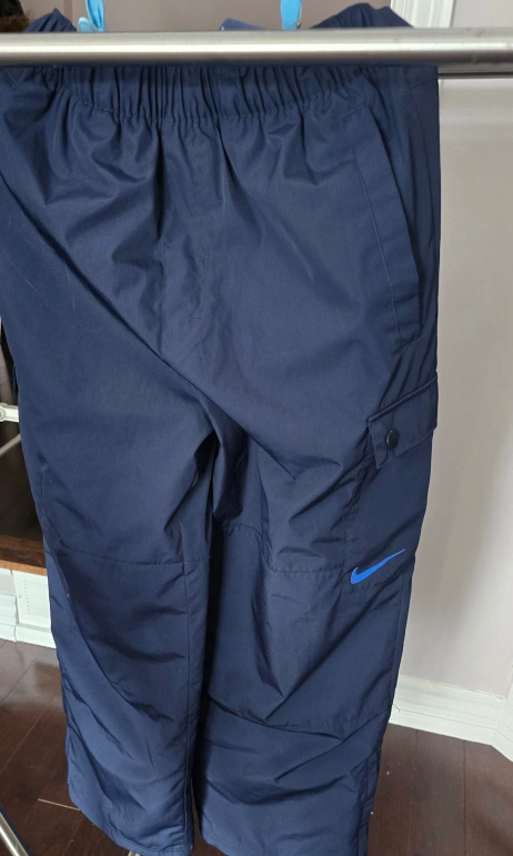 These Nike snow pants are navy blue, size large (12-13 years), and feature an elastic waistband with side pockets. Manufactured in China, they have a maximum elastic waist stretch of 32 inches and a 25-inch inseam. pick-up @ Freshco Steeles and Bathurst.