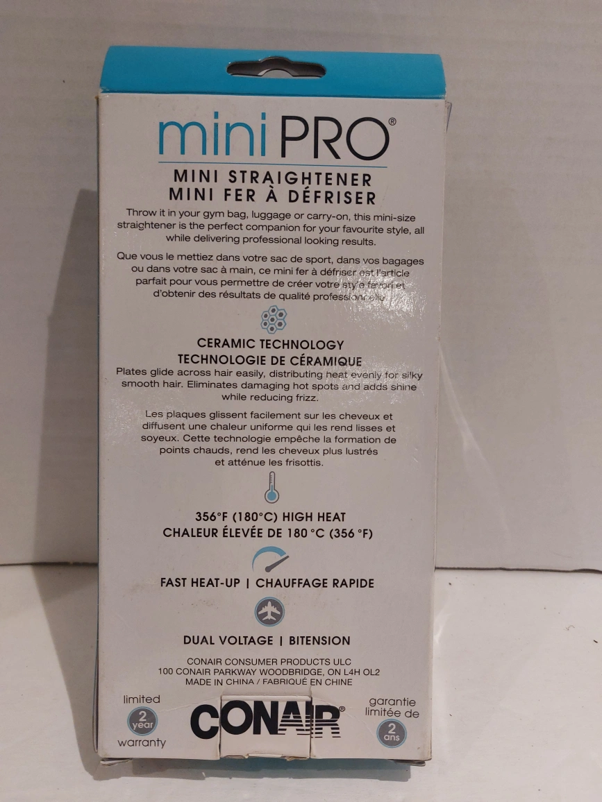 Conair MiniPRO Mini Straightener Mini size straightener. Perfect for travel. Ceramic technology. Fast heat up. Dual voltage. Lightweight and portable.