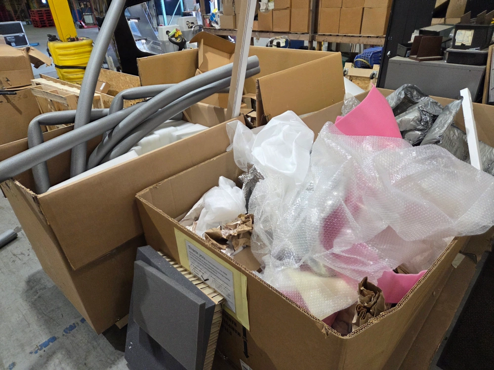 a box and two bags filled with used packing paper. Various shades of beige and brown. Great for arts and crafts, packing material, or other uses. and note i may have more you can have when you come if i have unpacked more.