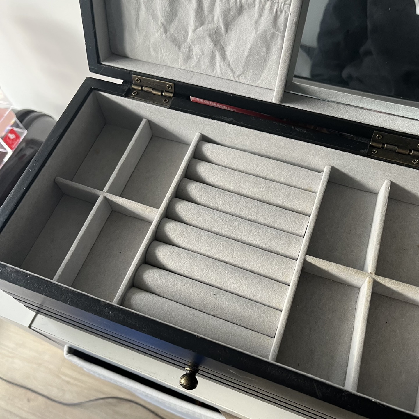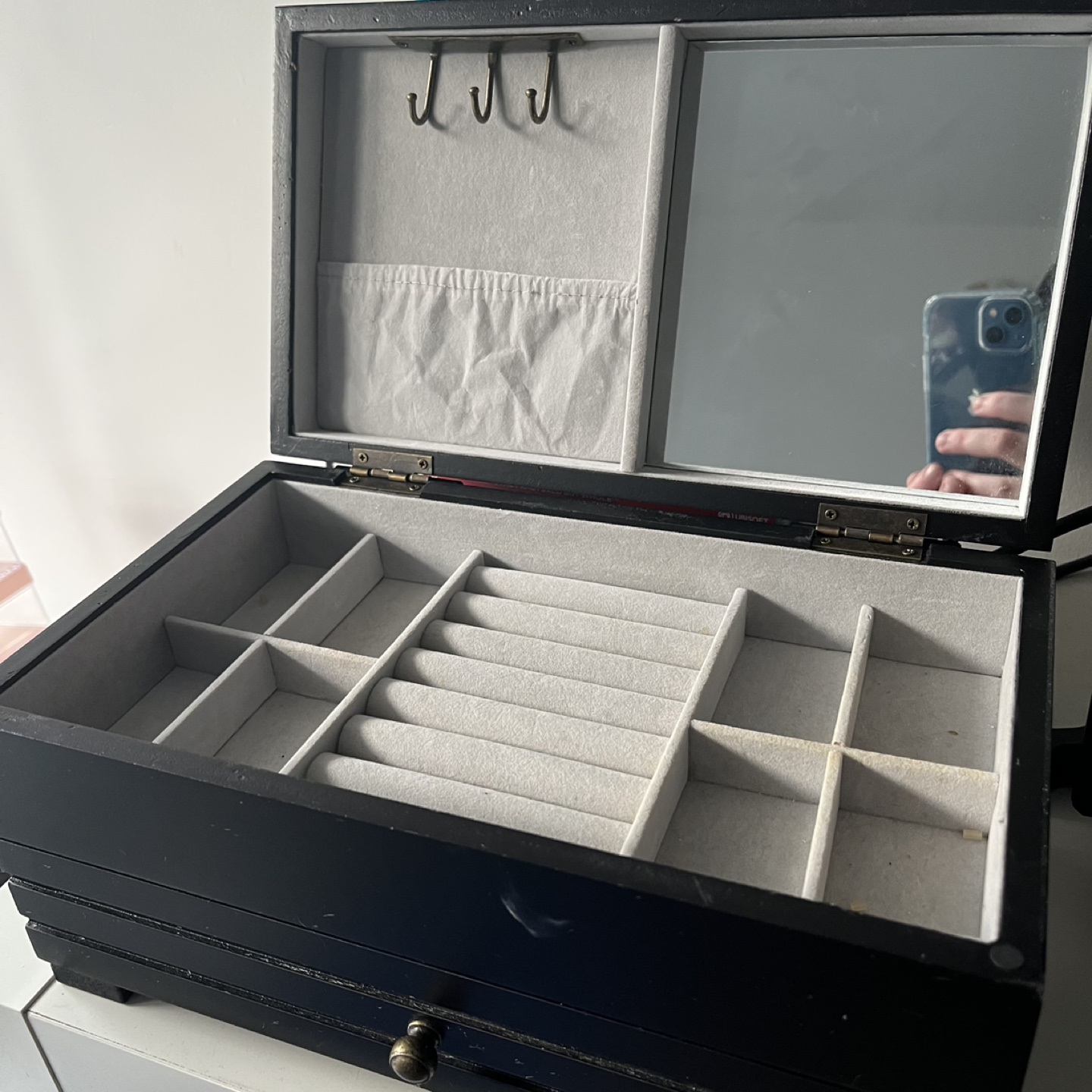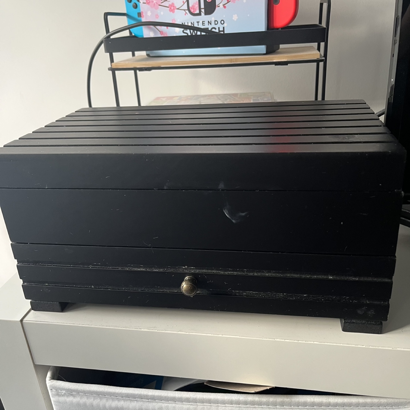 Black wooden jewelry box! In good condition on the inside but could use some new paint. Any jewelry I put in here has been neglected so I’m trying to find a new way to display my small collection, this is perfect for those who have timeless pieces they want to protect. Smoke free and pet free home. Check out my profile for more items included in my moving sale! Pick ups near Church/Carlton, exact address given to confirmed buyers. I’m generally available for pick ups on wednesdays and Thursdays.