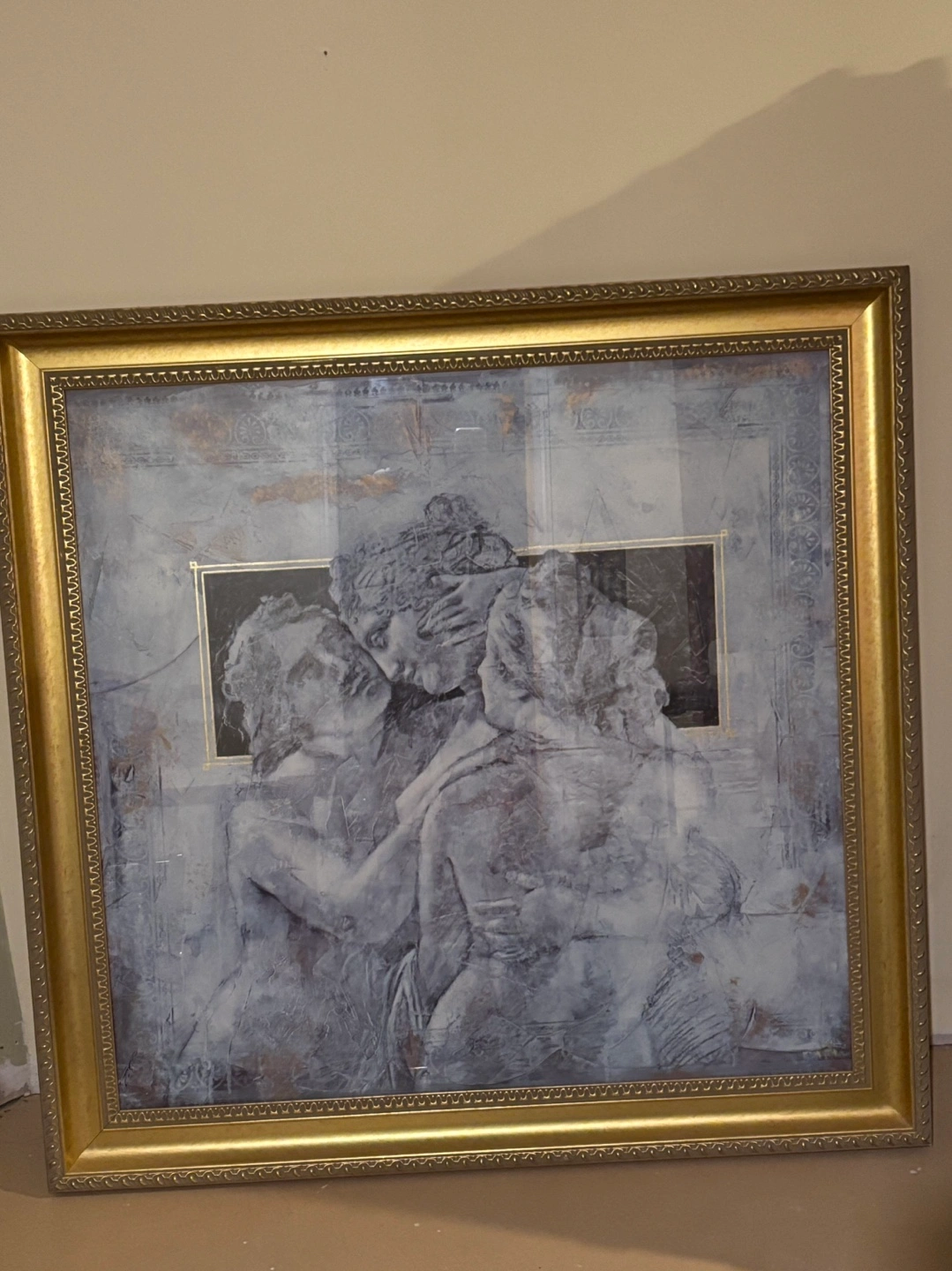 25Large framed wall art. Gold ornate frame. Depicts three sculptures. Beautiful piece for your home.
