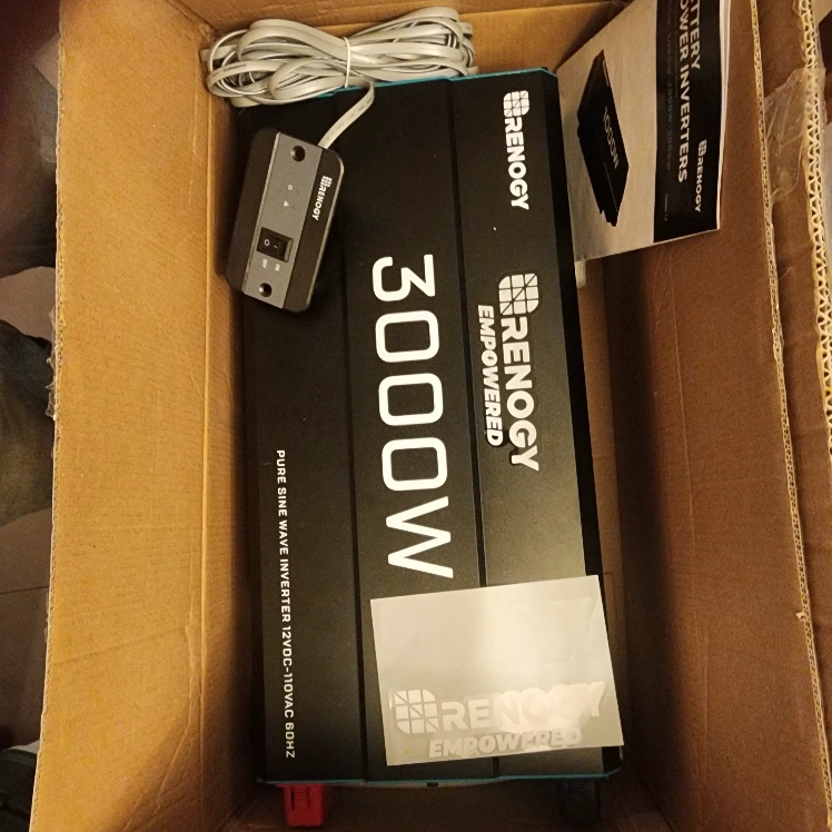 New Renogy 3000W pure sine wave inverter. Includes power cord and remote. 12VDC-110VAC 60HZ.