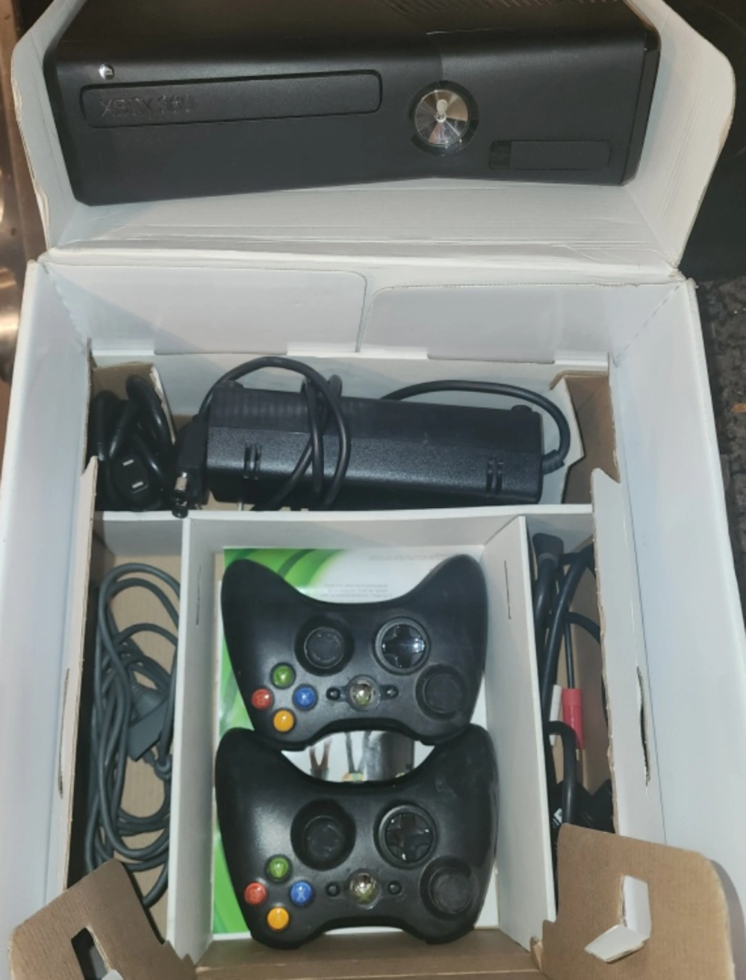 Rarely Used Vintage Xbox 360 4GB console. Includes 2 controllers and all required cables, Box shows some wear but system is like new. 4 Games included
