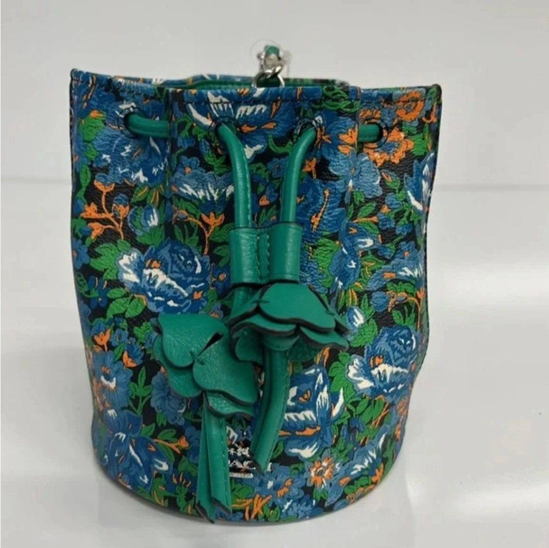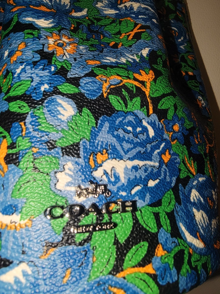 PETAL WRISTLET IN ROSE MEADOW FLORAL PRINT COATED CANVAS (COACH F57600) SILVER/BLUE MULTI COACH STYLE # F57600 Details Printed coated canvas Drawstring closure, fabric lining Wrist strap attached 5 1/4" (L) x 5 3/4" (H)