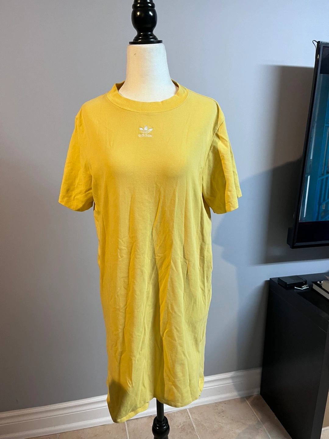 Mustard yellow Adidas t-shirt dress. Features small Adidas logo on chest and large logo on the back. Wore it only a handful of times.
