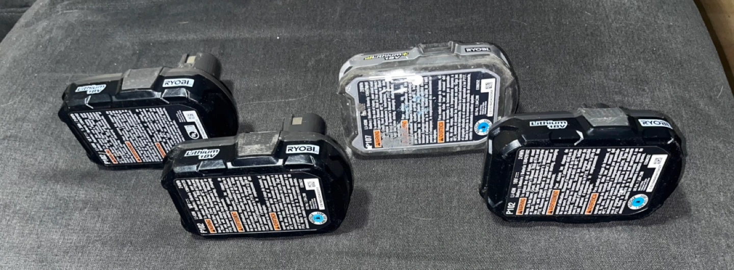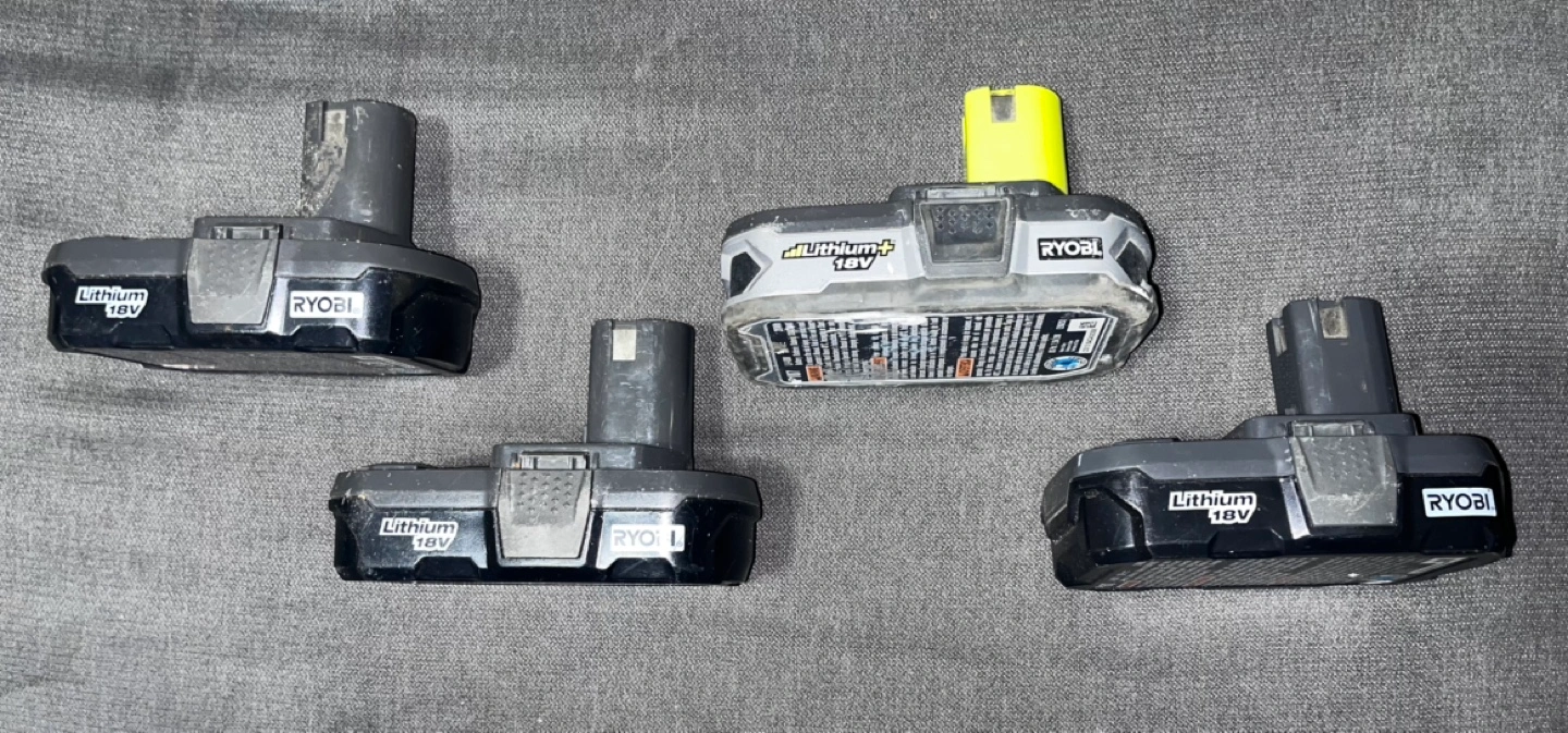 Lot of 4 18V Ryobi Lithium-ion batteries. Used condition, varying wear. All have been tested. Sold as is. $25 each or all 4 for $80