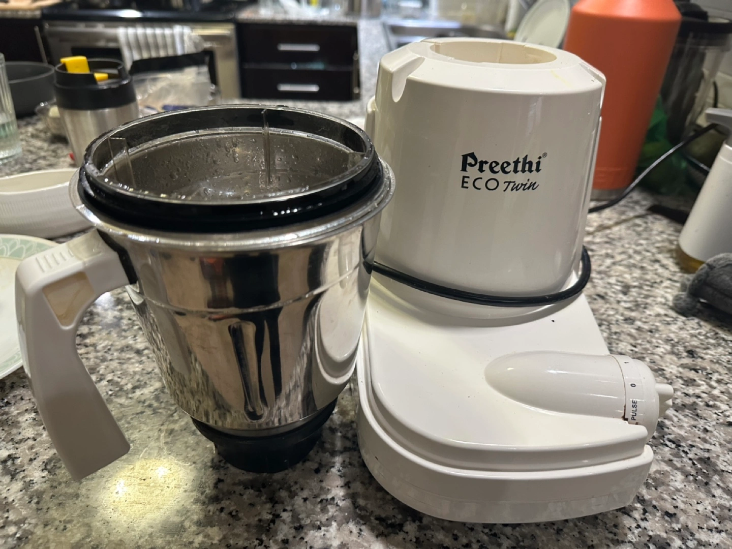 Preethi Eco Twin blender. Includes 1 jar and base. Missing 1 small jar. Used condition.