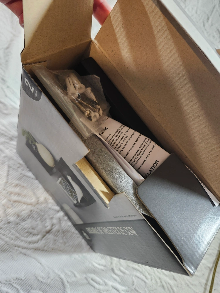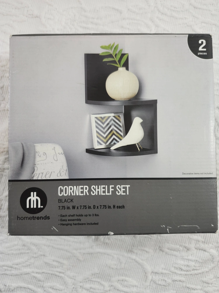 New in box 7.75 W+D+H each Holds up to 3 lbs Easy Assemble Hanging hardware included never got around to putting it up $20 walmart
