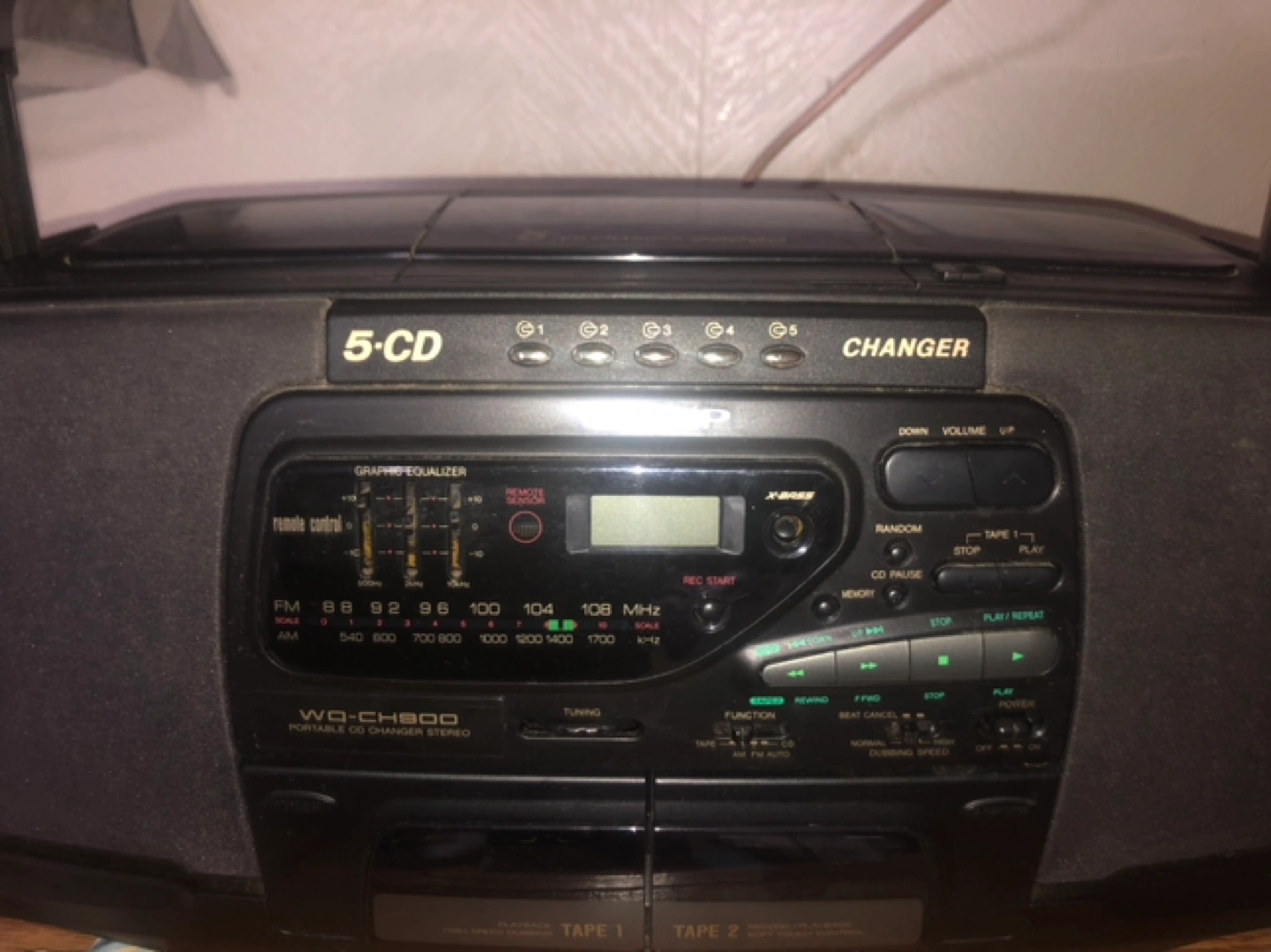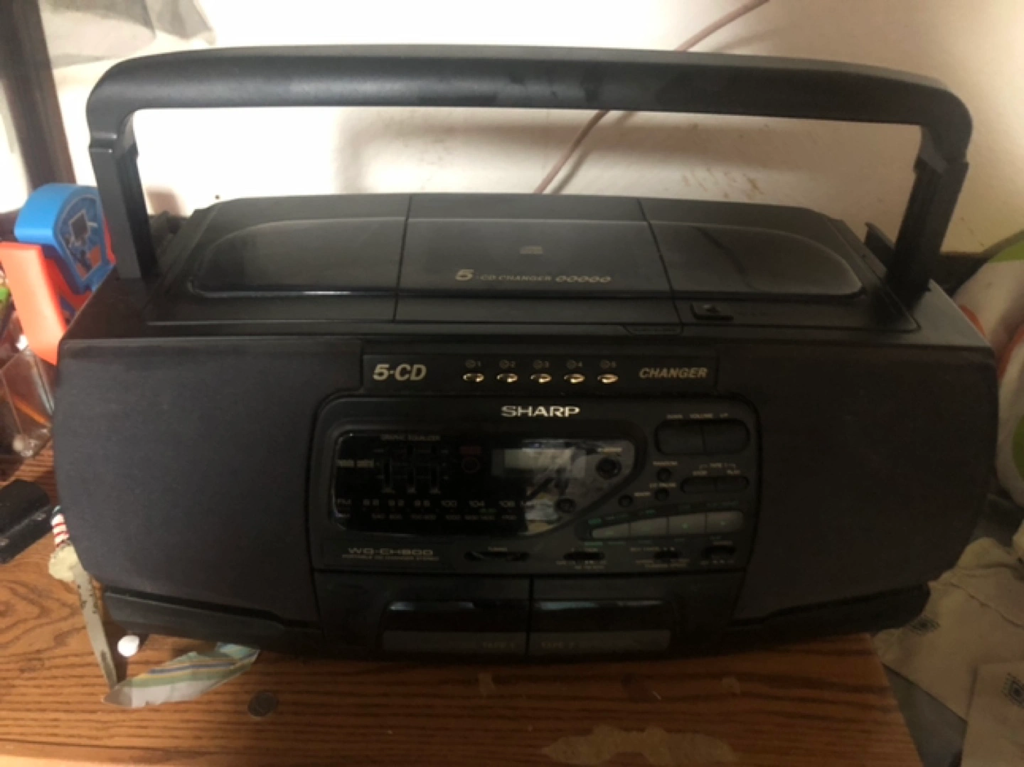 Vintage Sharp Portable CD and cassette player. AM/FM radio. 5-CD changer. Double cassette deck. Old school but still Works! Willing to meet up, drop off, or porch pick up.