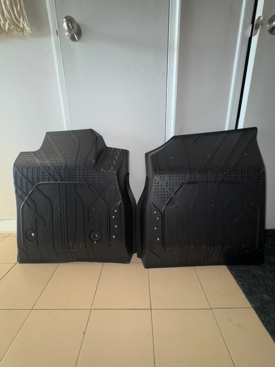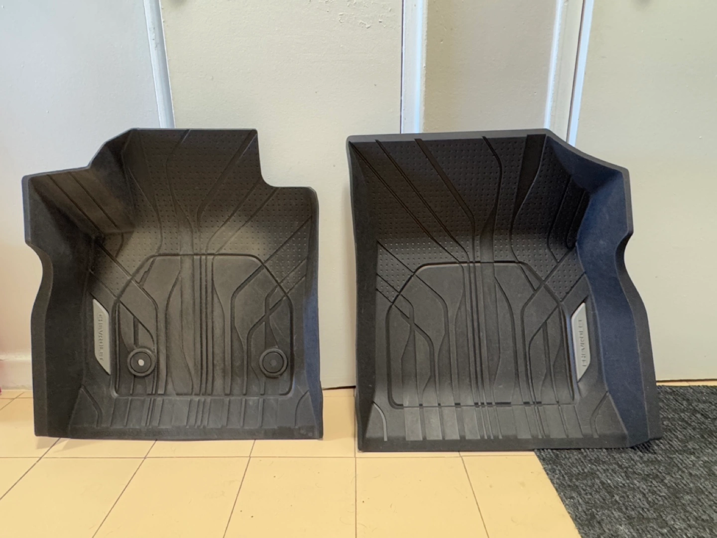 Pair of used OE Chevrolet black floor mats. Fits 2016-2019 Chevrolet Cruz. Heavy-duty rubber construction. Designed for front drivers and passenger floor, exact fit. Some minor wear on drivers mat. Easy to clean, keeps all the messes contained!