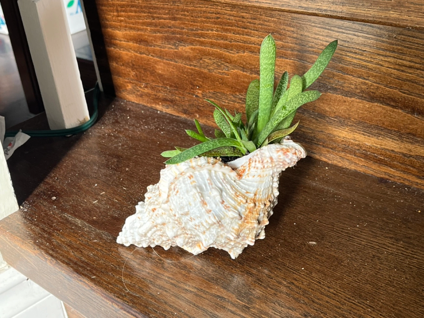 Unique succulent planter. Small plant in a large seashell. Perfect decorative accent for any home.