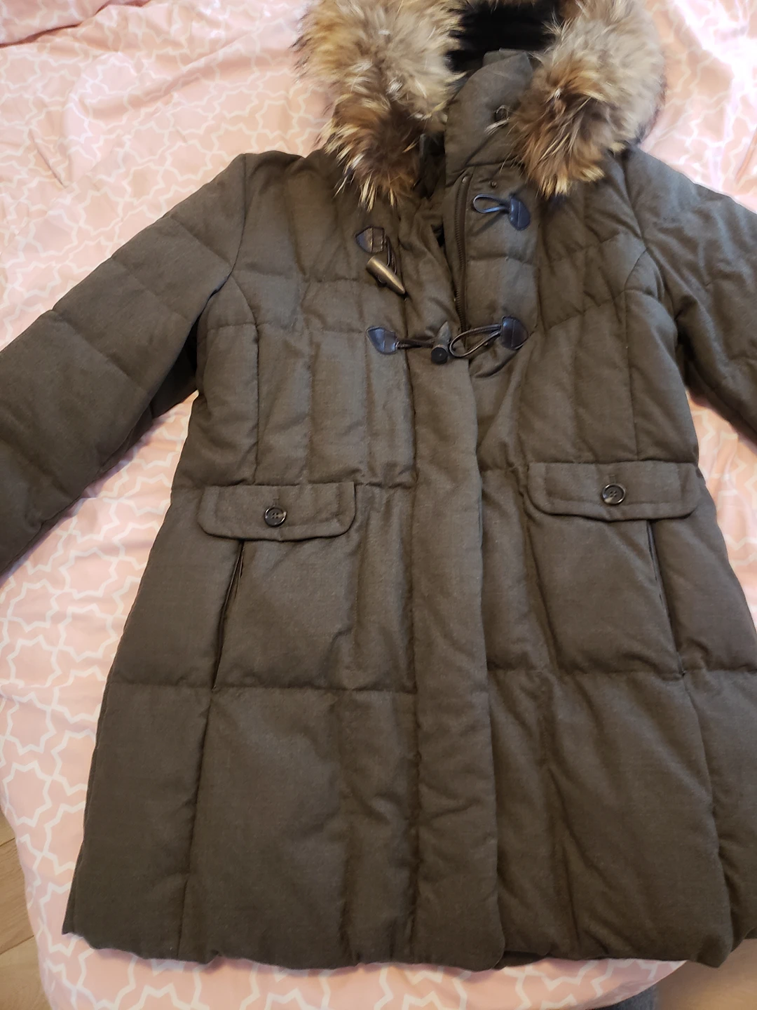 Hello, I have a winter jacket in excellent condition for sale. It is clean, with no rips, no tears, no scuffs, it's in great condition! And it is extremely warm as it's filled with Goose Down. It's a size Large and roomy enough to wear a hoodie underneath. The hood detaches as well if needed and it is real fur lined on the hood. Pick up available at 3975 Grand Park Drive, Mississauga. Thank you!