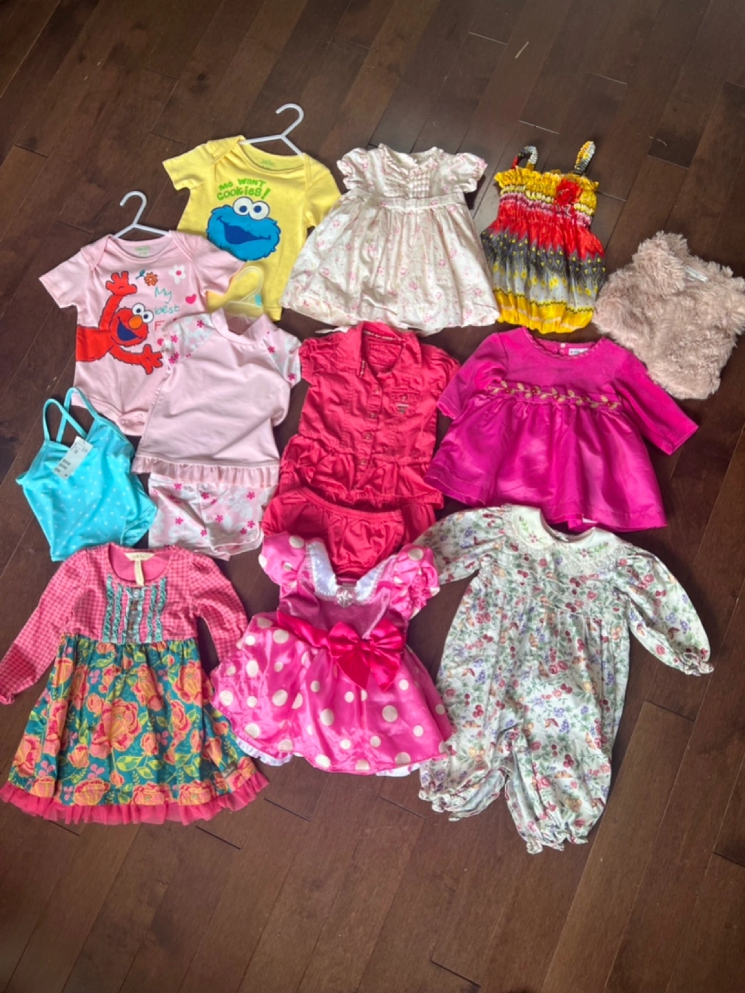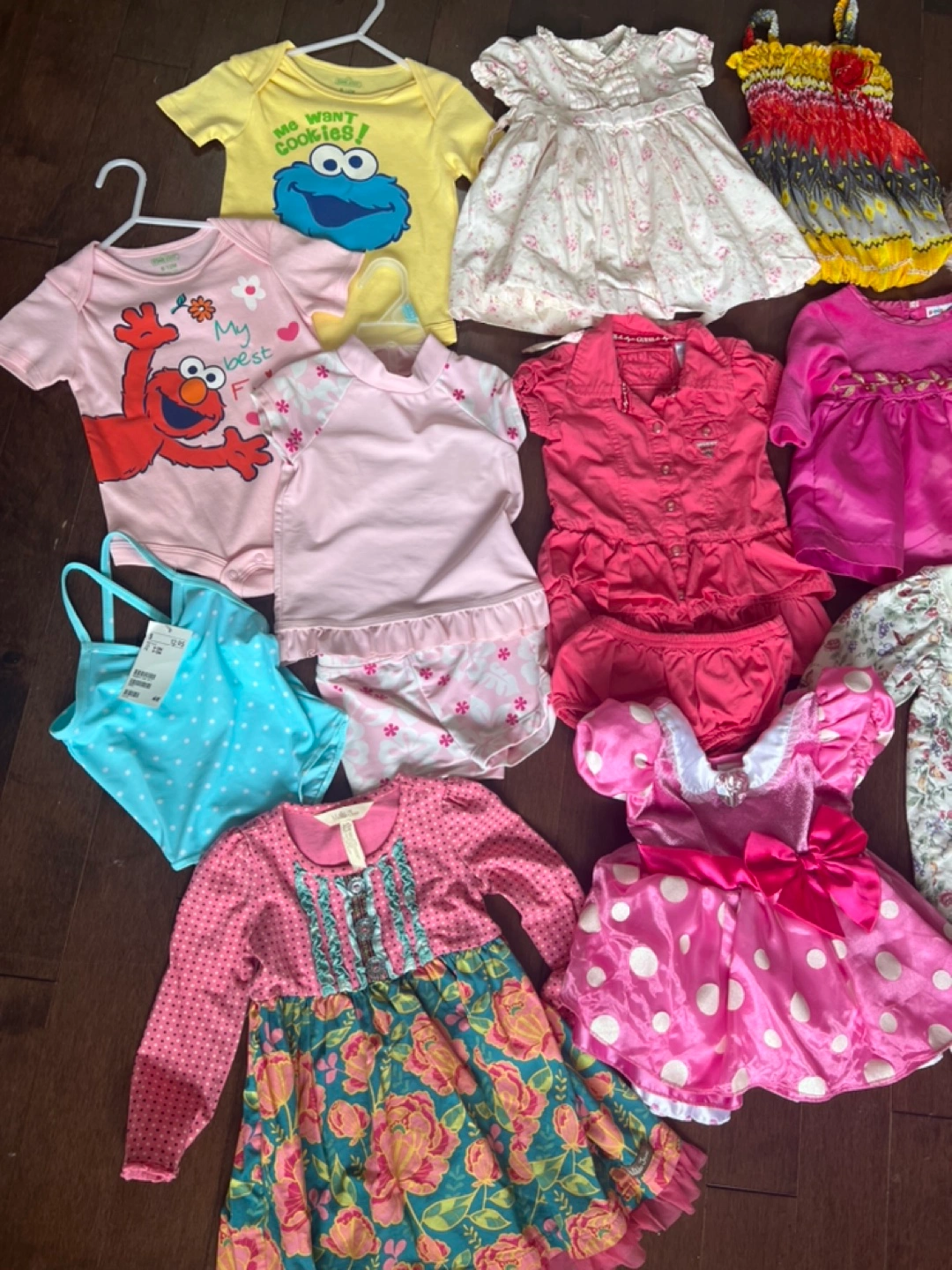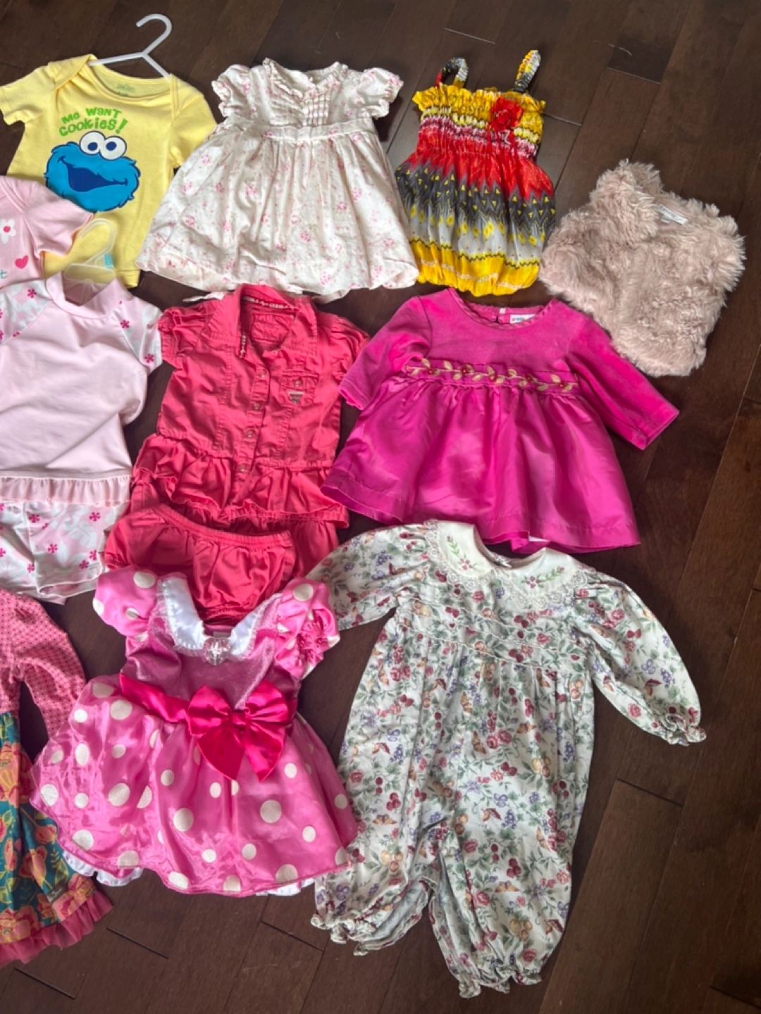 Few on the left are still brand new with tags. Rest are in good condition. 2 dresses on top are size 0-3months but can fit up to size 6months, 2 pink dresses at the bottom are size 12-18, the rest are size 6-12months. Take all for $35 Selling as a lot, not separating. From pet-free and smoke-free home. Pickup at Millwoods CASH only upon pickup Check more of my posts!:)