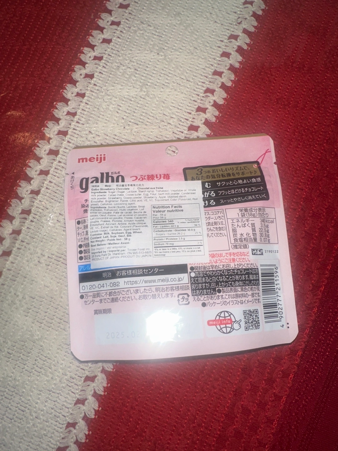 Unopened package of Meiji Galbo strawberry chocolate. Bite-sized chocolate covered biscuit sticks. Japanese confectionery. Food item I won’t eat this, so I’d like to give it away Thanks