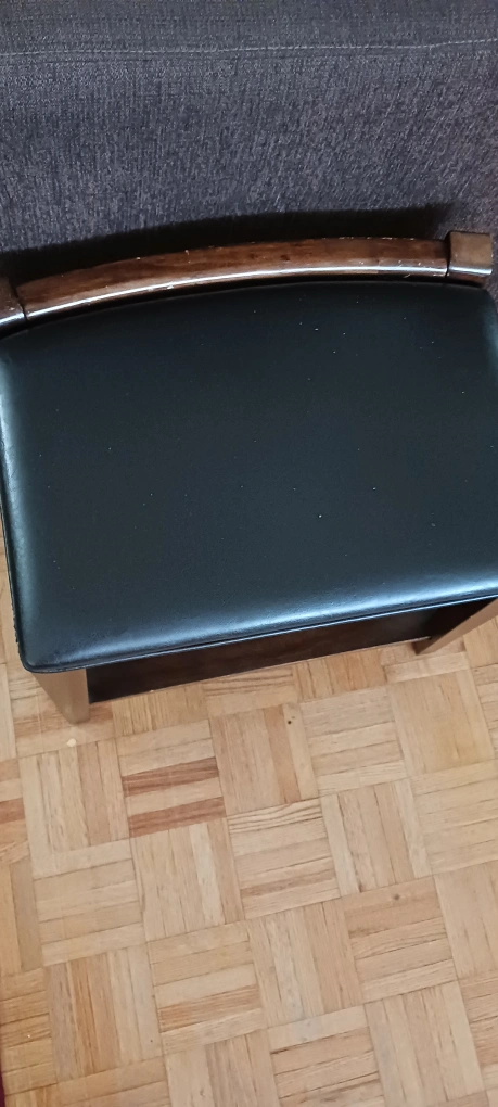 Small wooden Black leatherette top side table looks very elegant. good for the living room.. Features a lower shelf. Dark brown wood frame. Good for extra seating or storage or multiple use.