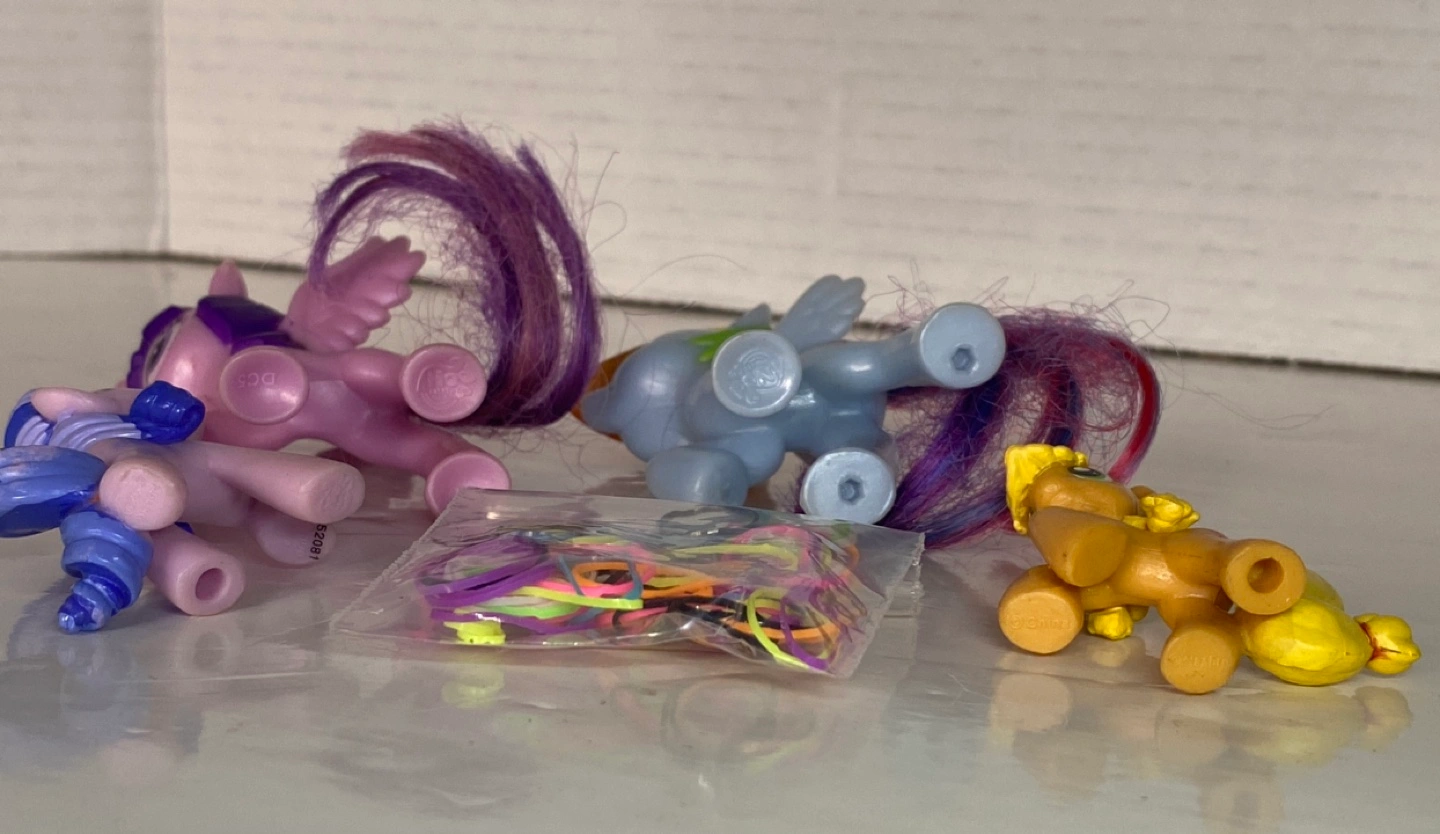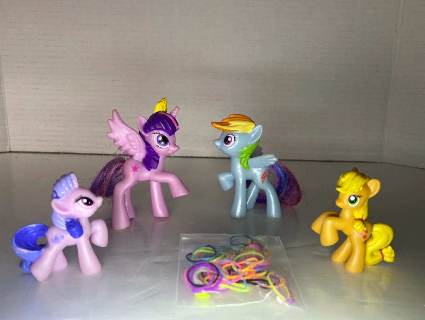 My lil pony’s with accessories set Selling together $20 The accessories are brand new The pony’s are in great shape they have been sitting on self storage for awhile. Pickup is Whitby BSN & Maple Shipping available at buyers Expense Comes from a PF/SF/DF home