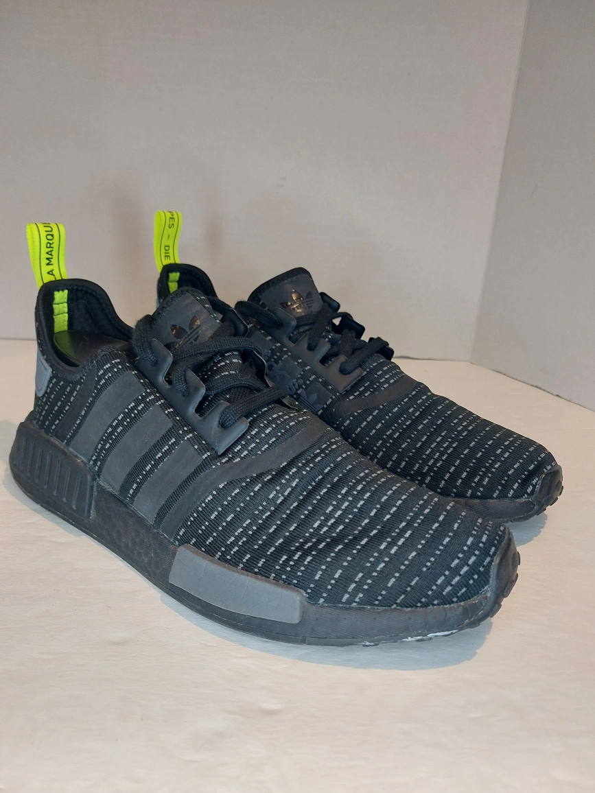 Adidas NMD_R1 Shoes - Men Size 10.5 Adidas NMD_R1 sneakers. Black and grey colourway. Neon yellow accents. Boost sole. In very Good to excellent condition.