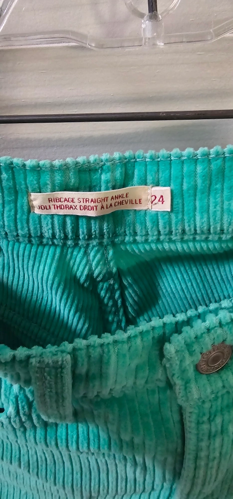 please ✔️check✅️✅️✅️ my listing lots of items from $1 to $5 in my listing A little bet Stretchy women's teal corduroy pants . Straight ankle style. Size 24. Levi's brand.