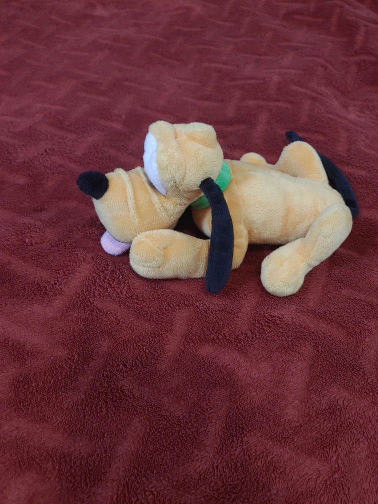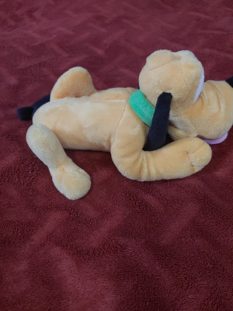 8 Inch Disney Plush Pluto Dog Green Collar Bean Bag Body Yellow Stuffed Animal Toy
