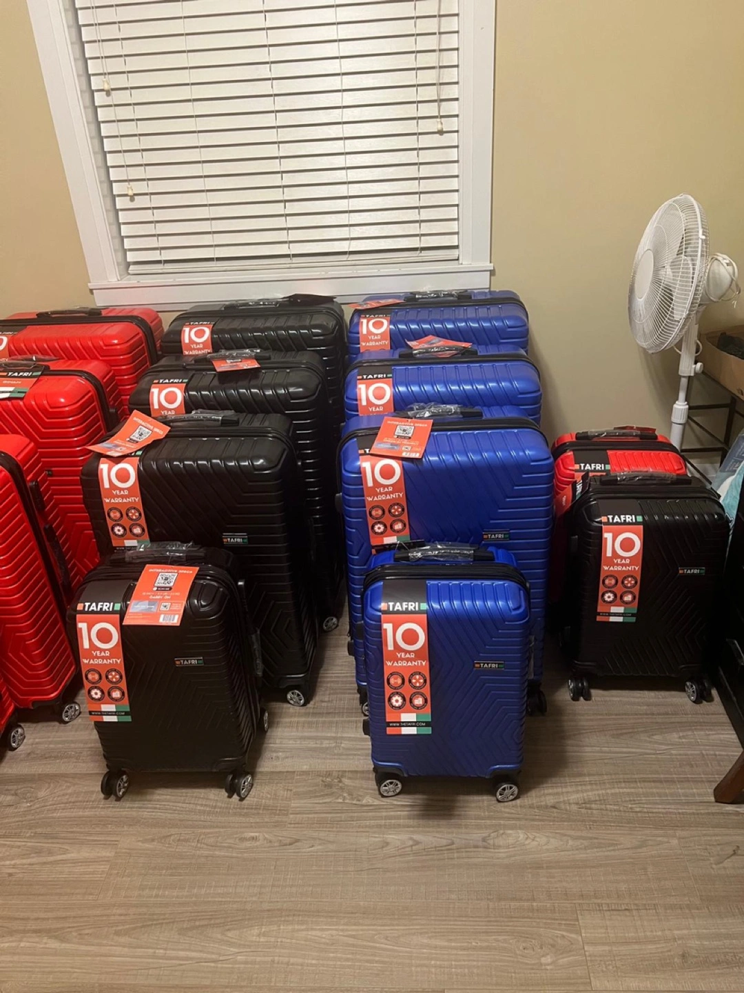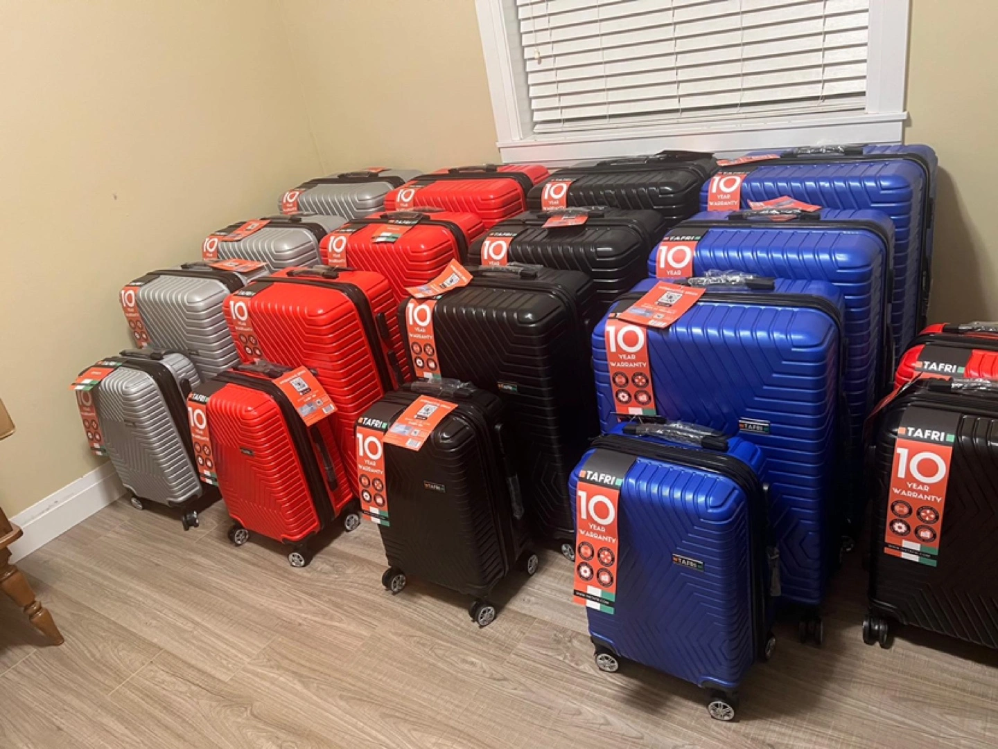 Multiple new Tafri suitcases available. Several colours and sizes included. Great for travel or resale. Ten-year warranty.
