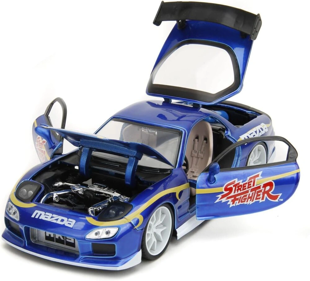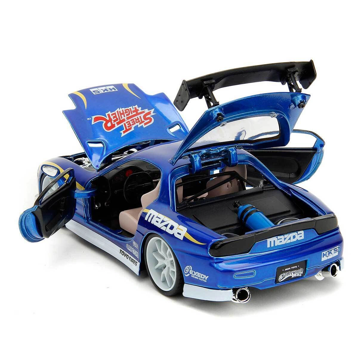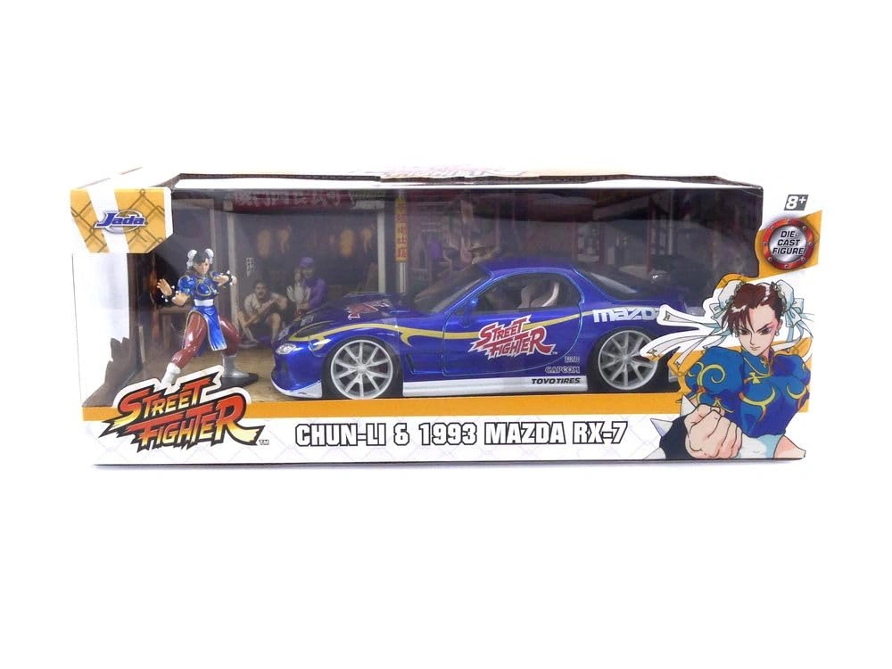 Collectible 1:24 scale die-cast model. Features Chun-Li figurine. Blue RX-7 with Street Fighter branding. Opening doors, hood and trunk. Detailed interior and exterior. Mint! pickup mississauga near square one mall