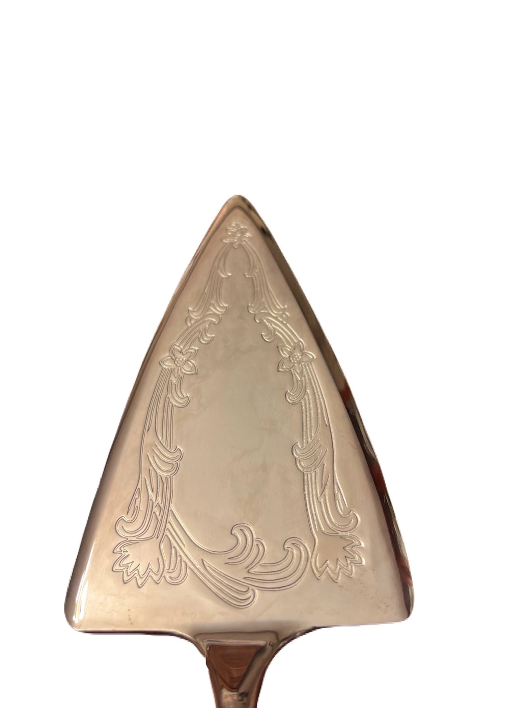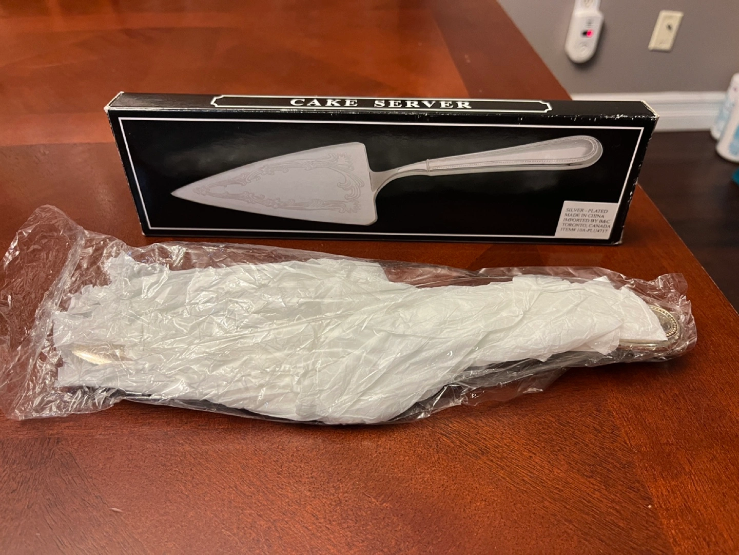 Excellent condition E.P. Zinc silver-plated cake server. Used in one wedding. No tarnishing. It’s been wrapped up in tissue paper and plastic packaging and stored in its original box. Approximate measurements: Total length - 10.5” Width at widest point: 2.5” Pickup in Oshawa - Harmony/Rossland area