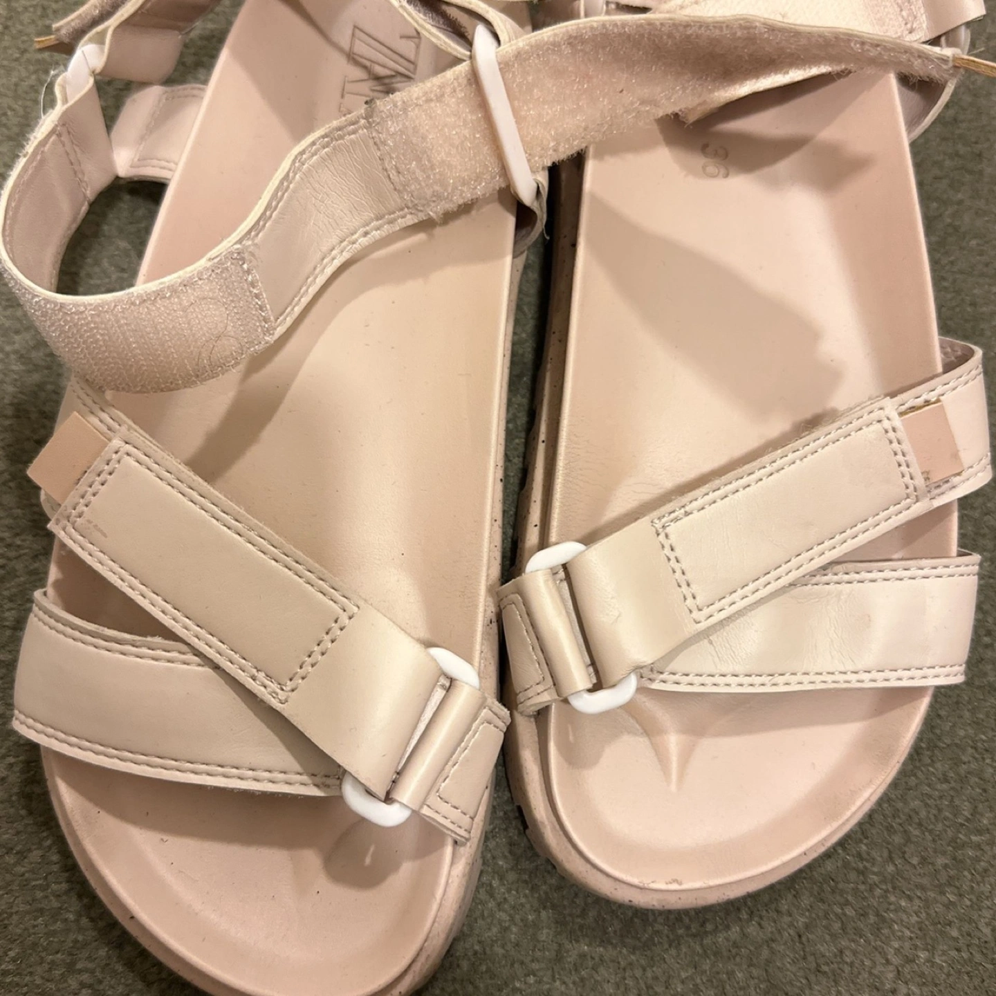Lightly worn, beige leather sandals. Adjustable straps. Good condition, minor wear signs. Size 36 or 6.5 womens