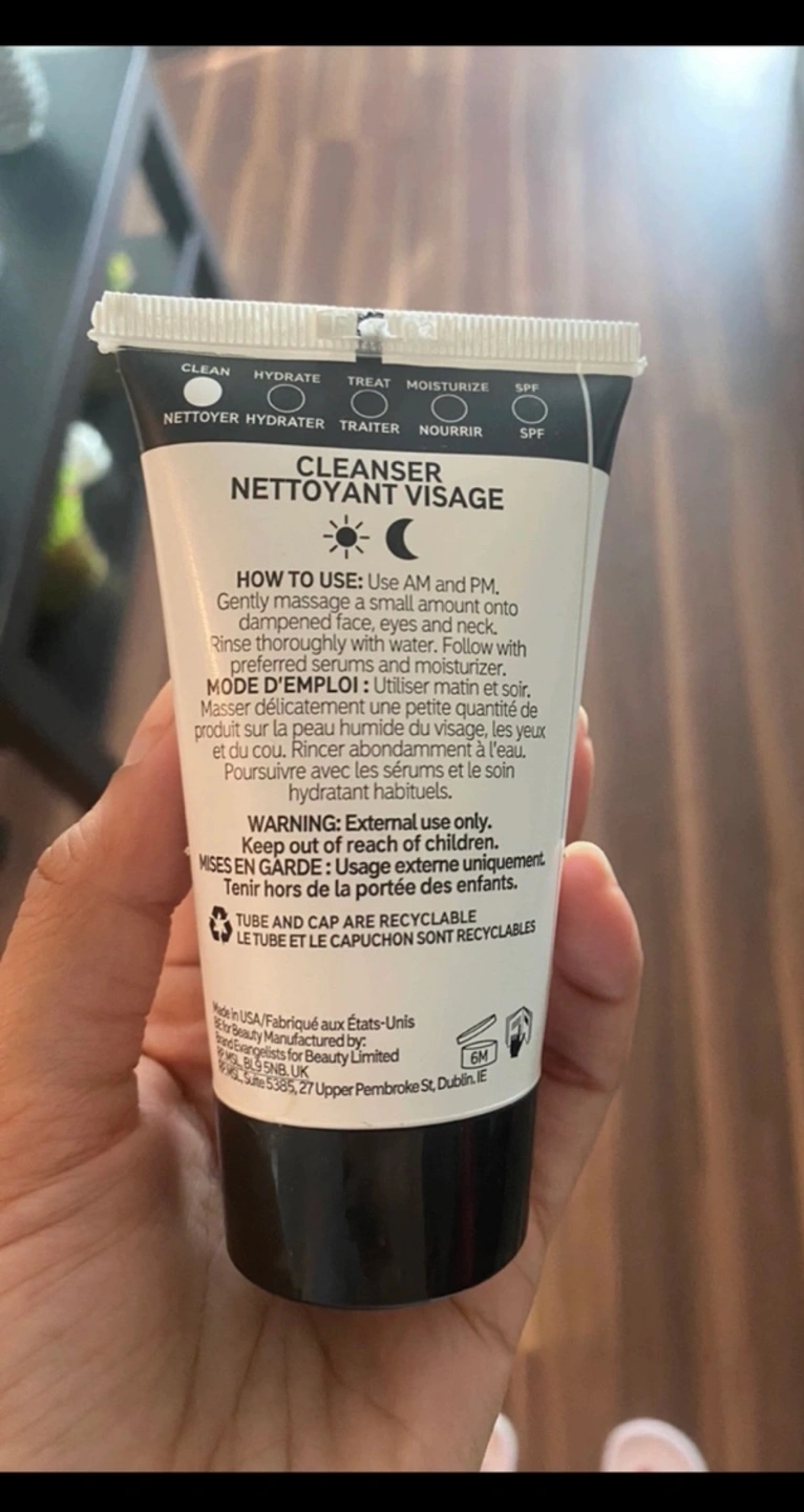 Gently cleanses and removes makeup. Brightens skin. New, used once. Travel-sized.