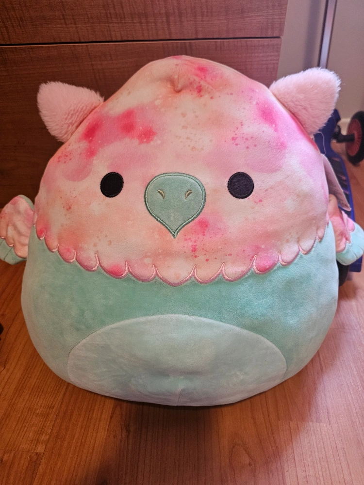Large pink and teal plush. Galaxy print. Adorable owl design. Excellent condition. smoke free