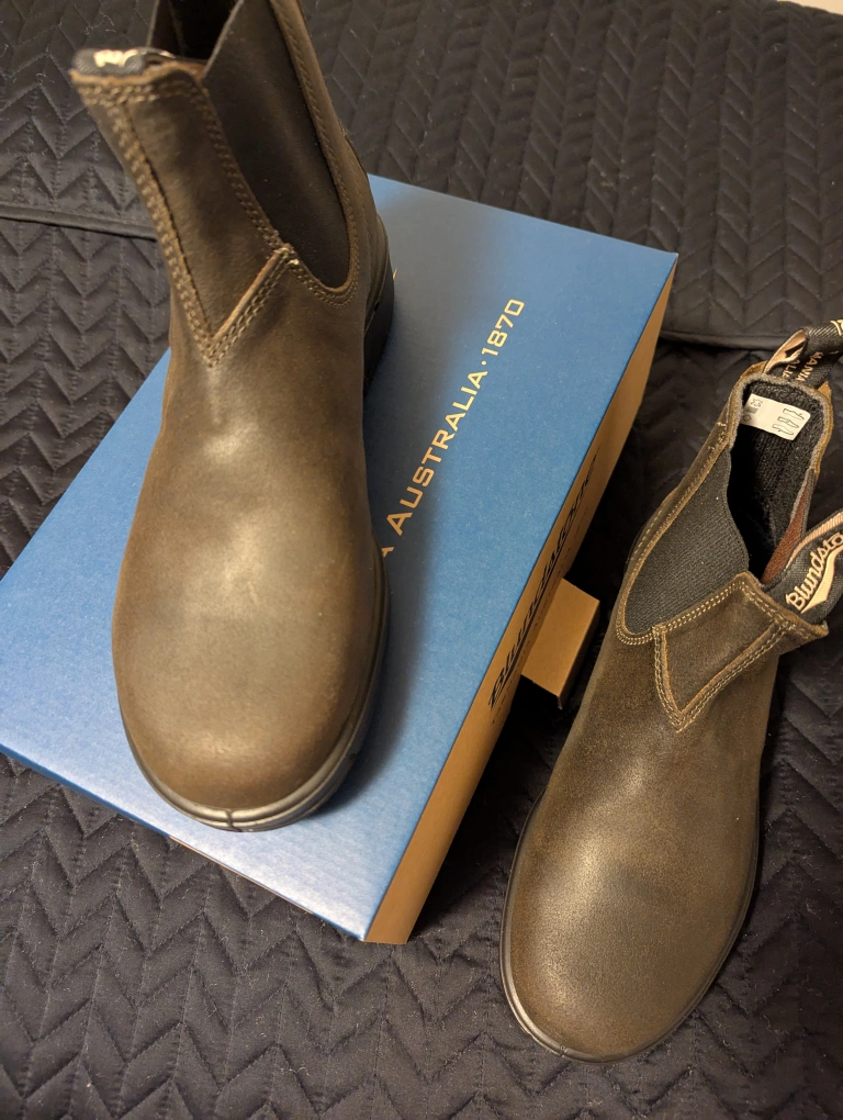 Brand new pair of men's Blundstone boots in dark olive colour. These are size 8.5UK or 9.5US. Original price approximately $249.00. Reasonable offers only will be considered.