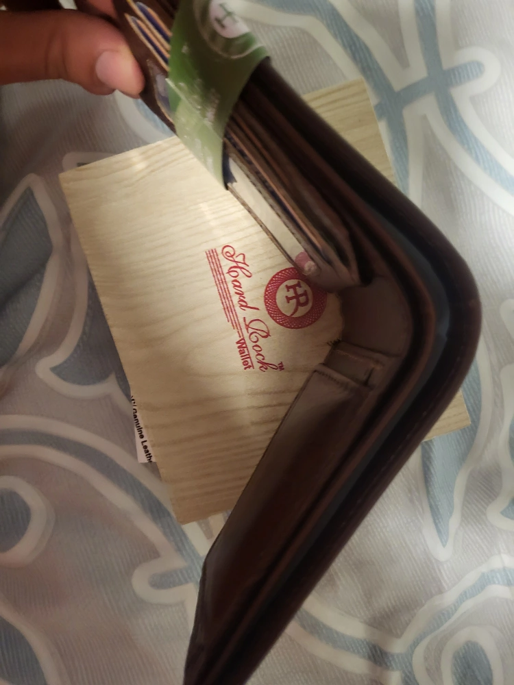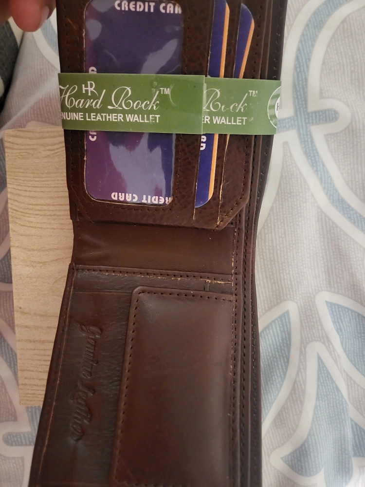 Brown leather bi-fold wallet. Multiple card slots and bill compartments. Comes in original box. real leather.