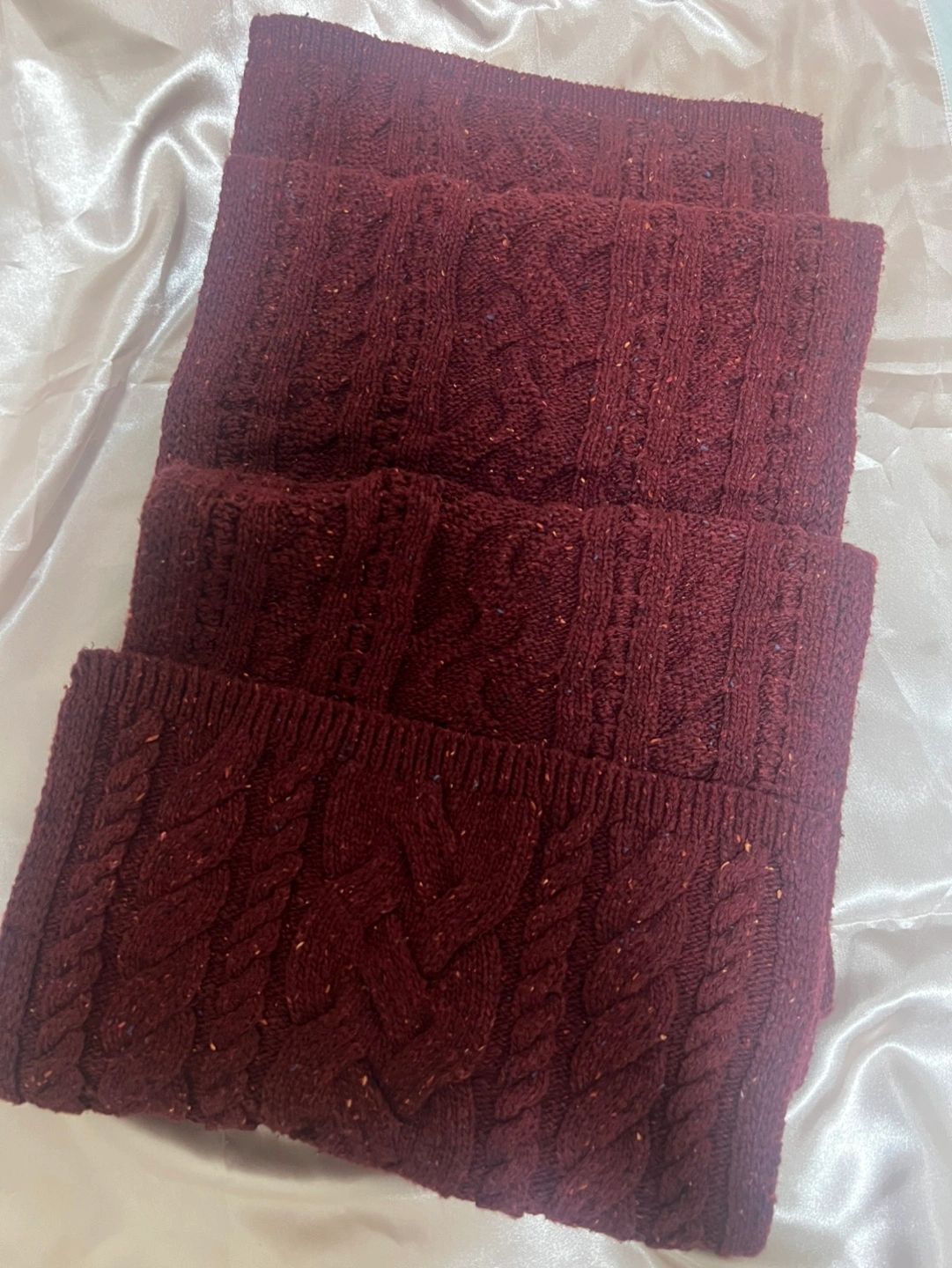 Maroon cable knit scarf. Soft material. Perfect for fall and winter. Excellent condition. Only worn once!