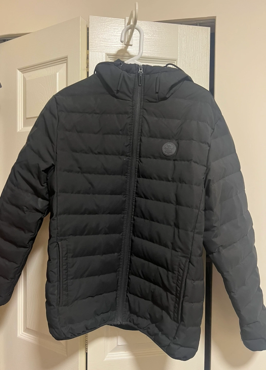 Black hooded puffer jacket. Specifies XL in Asian sizing but fits Woman Small, oversized ————— MOVING OUT SALE please check out my other listings! Have some great deals. :)