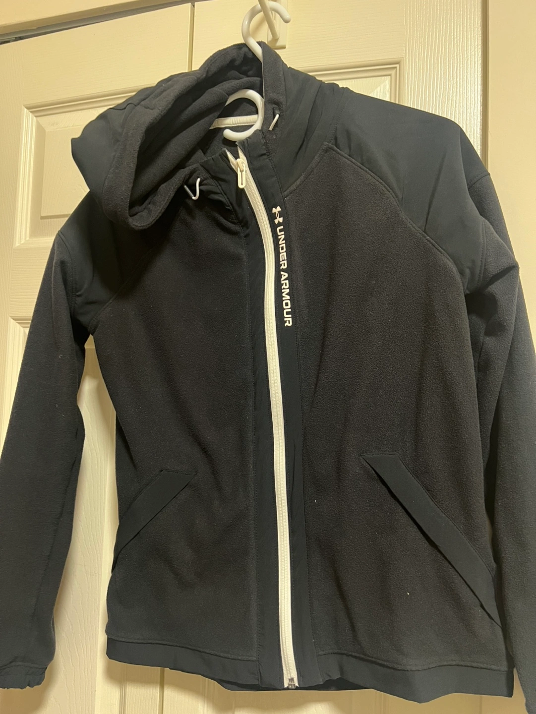 Women's Under Armour hoodie jacket. Small size. Black colour. Features a full zip closure, zipped pockets and a hood. Worn twice. —————— MOVING OUT SALE please check out my other listings! Have some great deals. :)