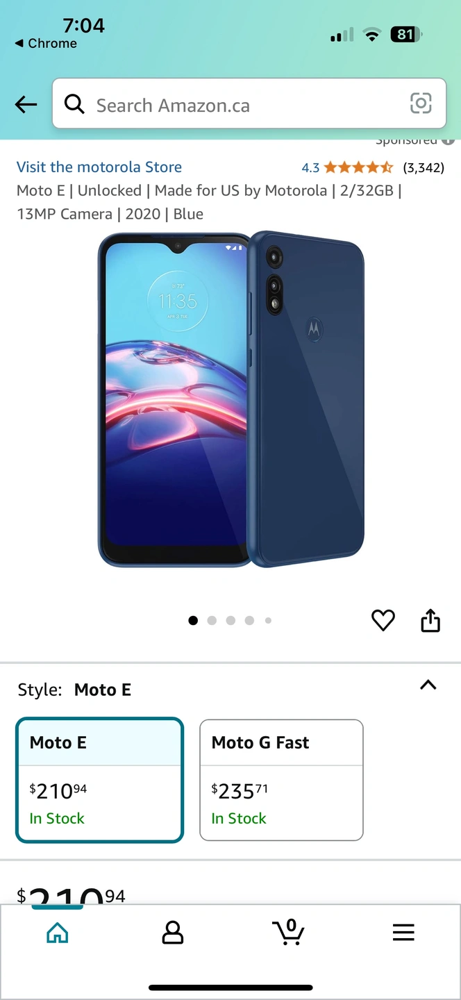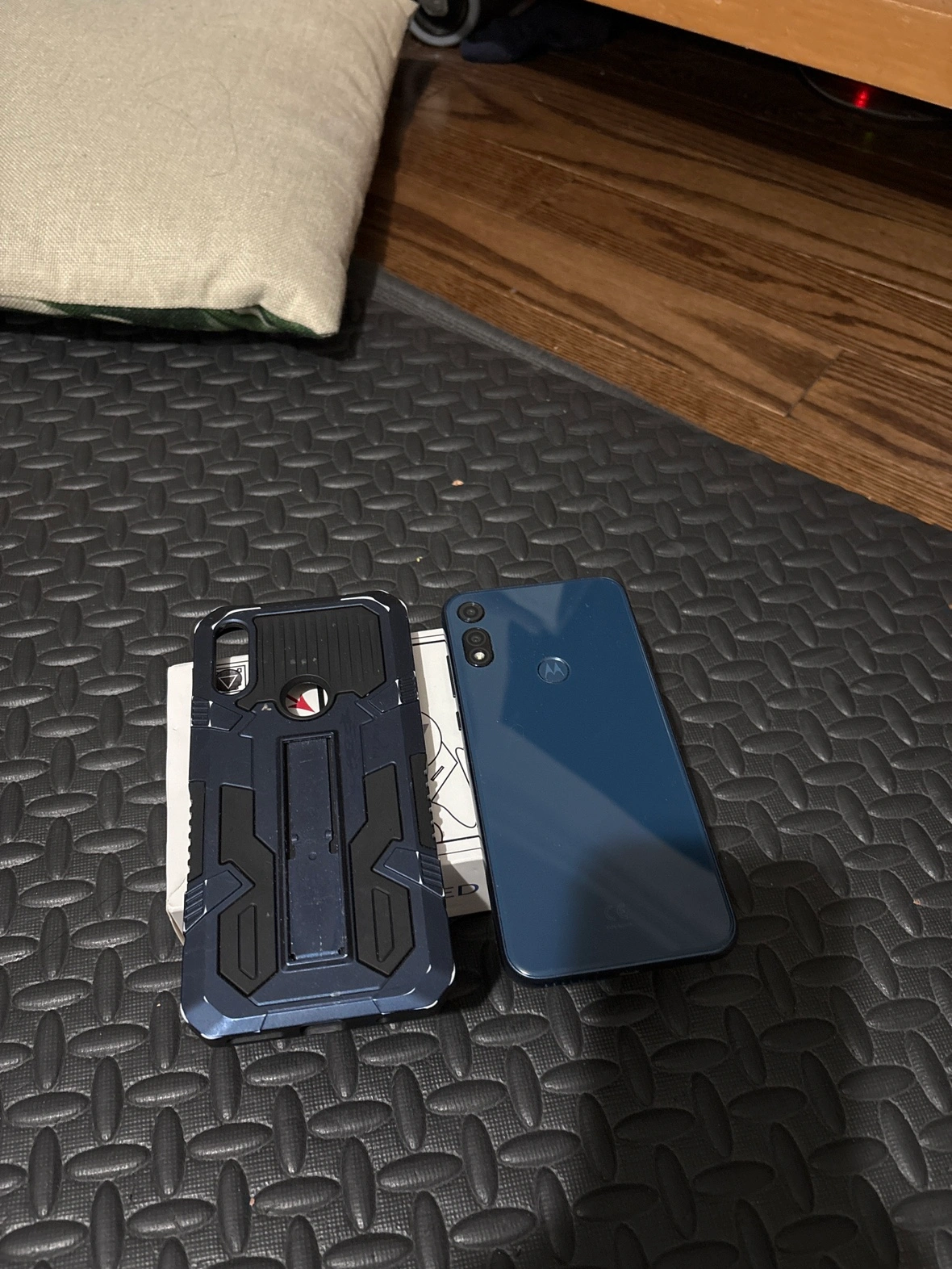 Like new, Lightly used Motorola Moto E smartphone. Blue colour. 2GB RAM, 32GB storage. Unlocked. No dents or scratches. Include a free mega case. Amazon currently sells for $210 +hst https://a.co/d/5er6C5M
