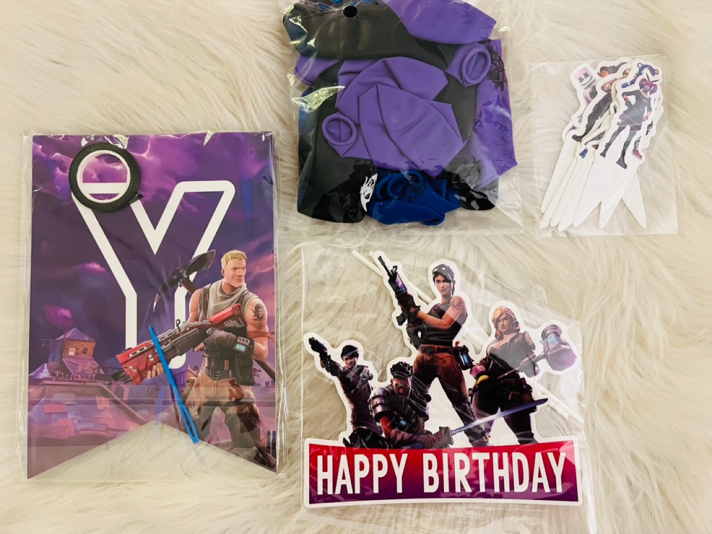 New in package Fortnight Birthday Party Set Embossed character balloons Cake topper Cupcake topper Hanging birthday banner PU Ottawa & Westmount, Kitchener