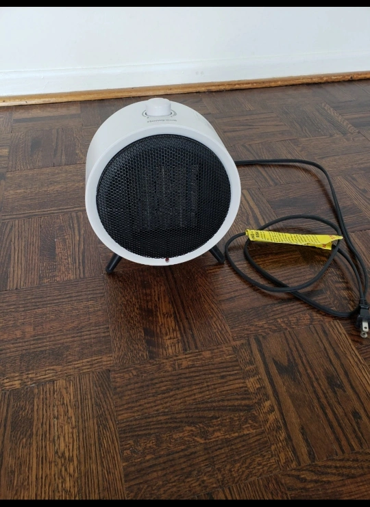 Compact ceramic heater. Portable and easy to use. Features adjustable thermostat.