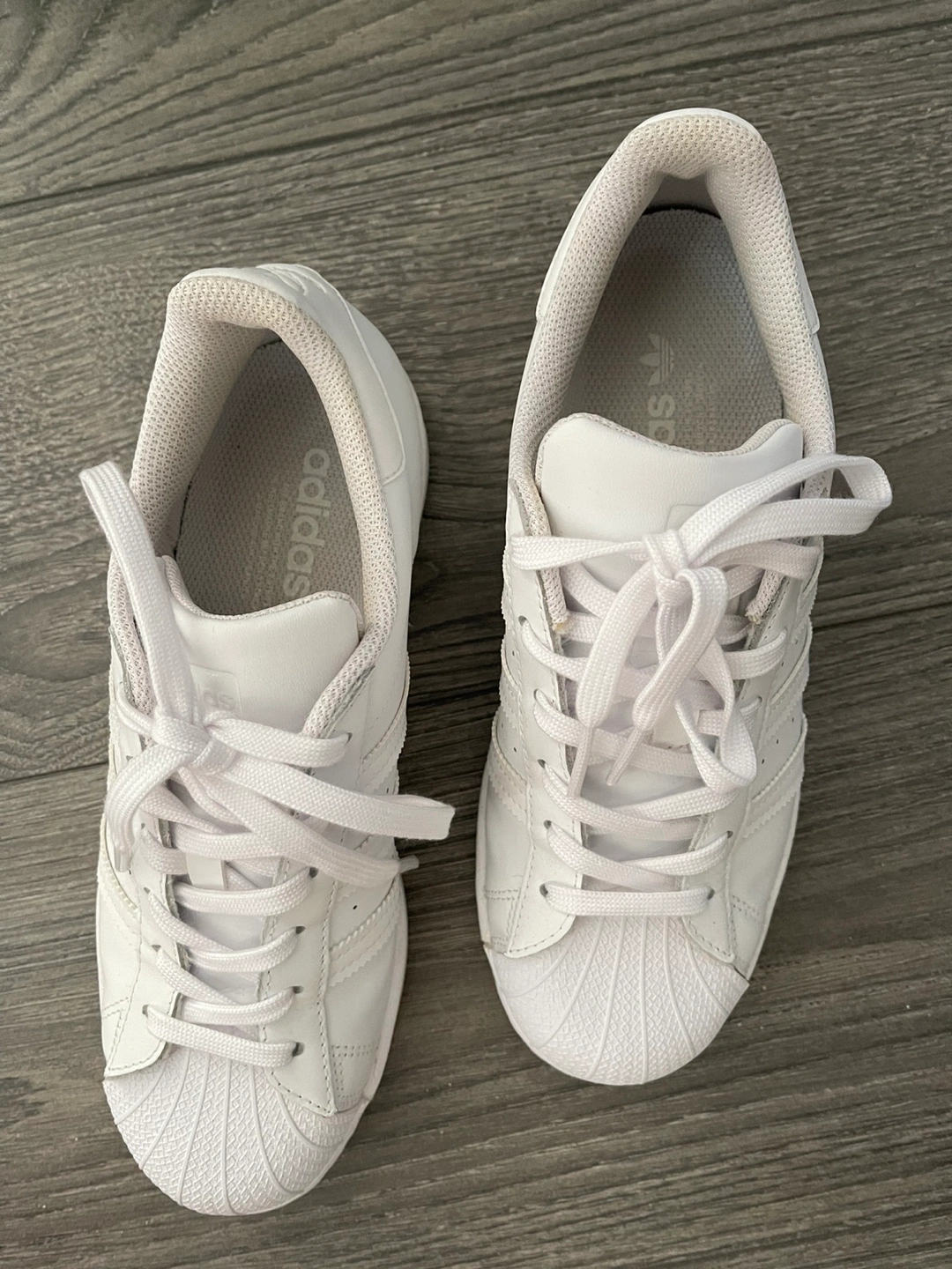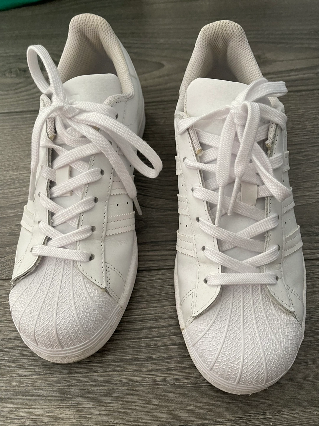 Women's Adidas Superstar sneakers. White leather. Size 7.5 US. Excellent condition.